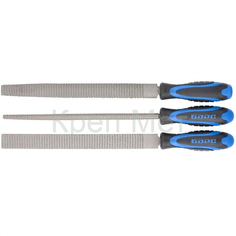 - Набор напильников 200 мм, 3 шт, двухкомпонентная рукоятка Барс