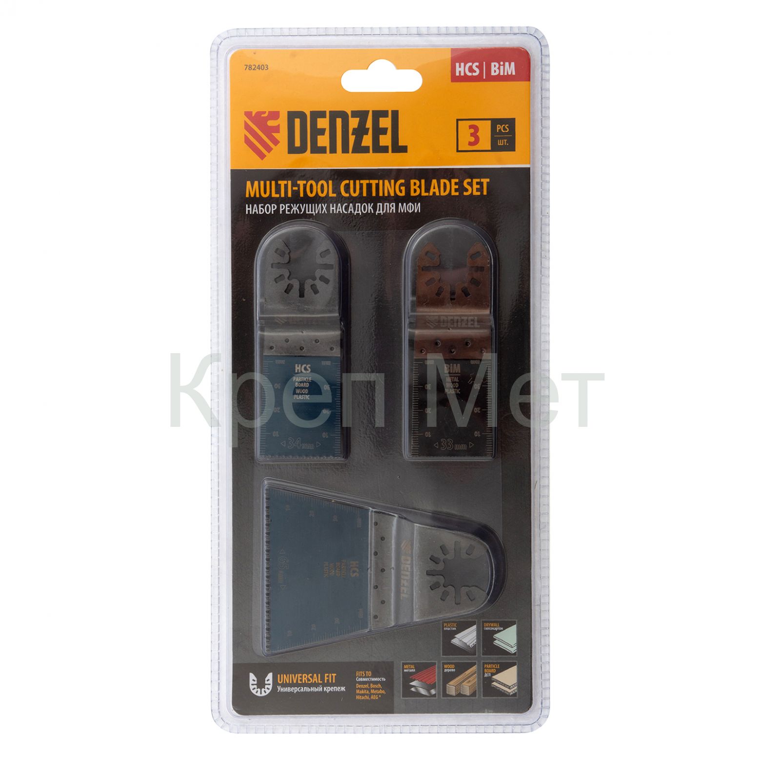 Набор Denzel 782403 состоит из 3 насадок по дереву, металлу и пластику, которые устанавливаются на МФИ. Благодаря ему можно осуществить широкий спектр работ: разрезать трубы, профильные листы, выполнить рез материалов, осуществить выборку пазов и др.