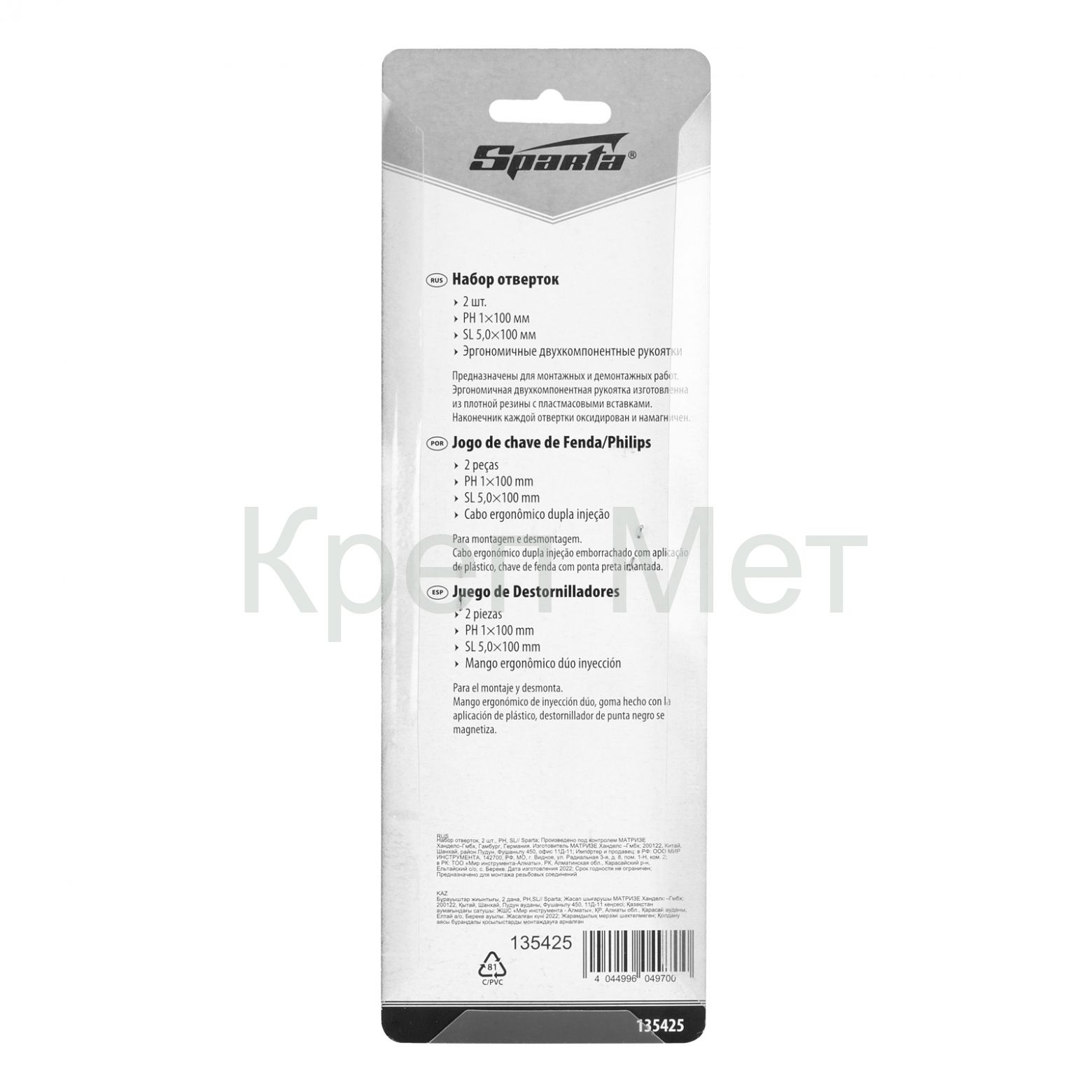 Набор отверток Sparta 135425 из 2 шт., со шлицами PH и SL, предназначен для откручивания и закручивания резьбового крепежа. Входящие в комплект поставки инструменты подходят для работы с самыми распространенными шлицами. Набор будет полезен в быту.