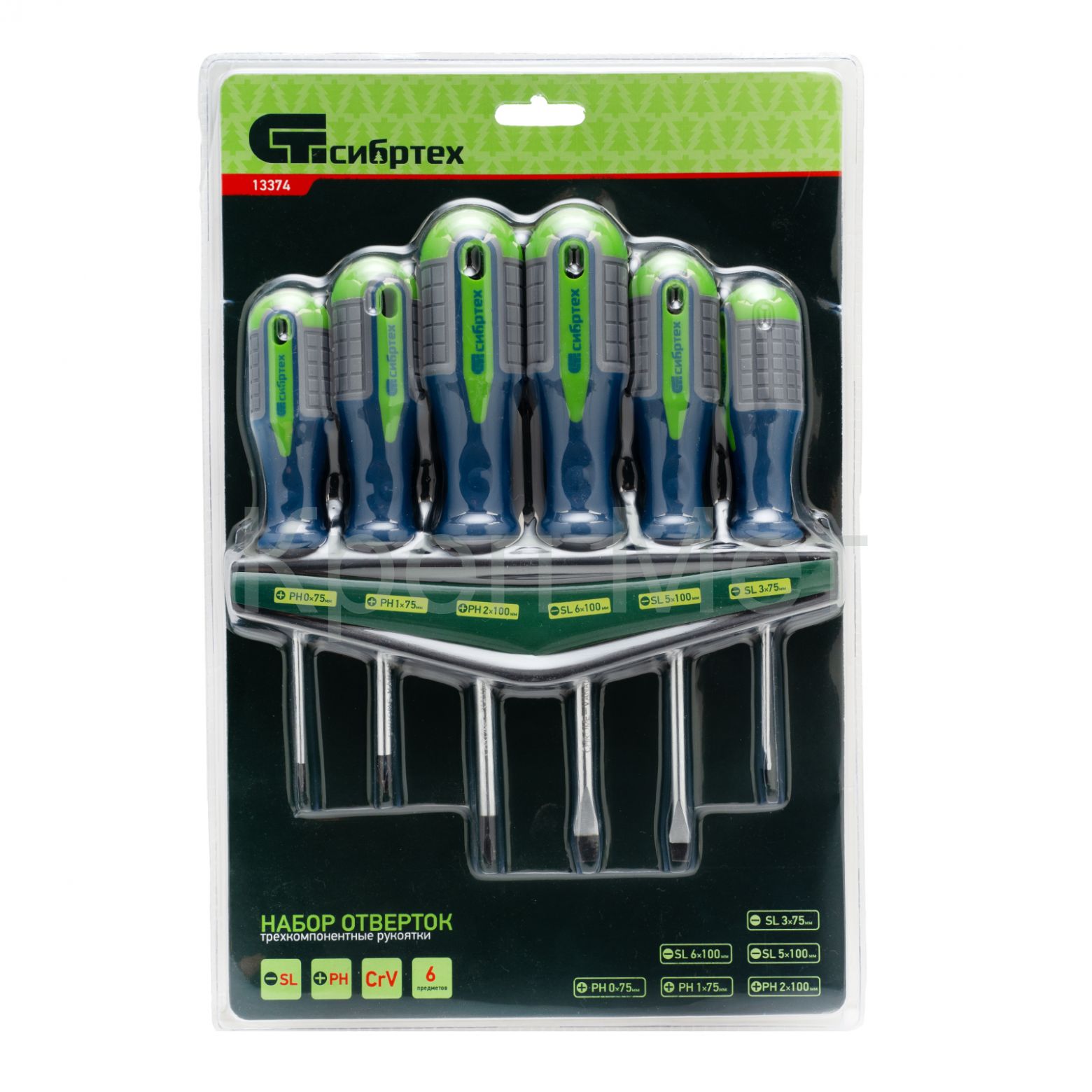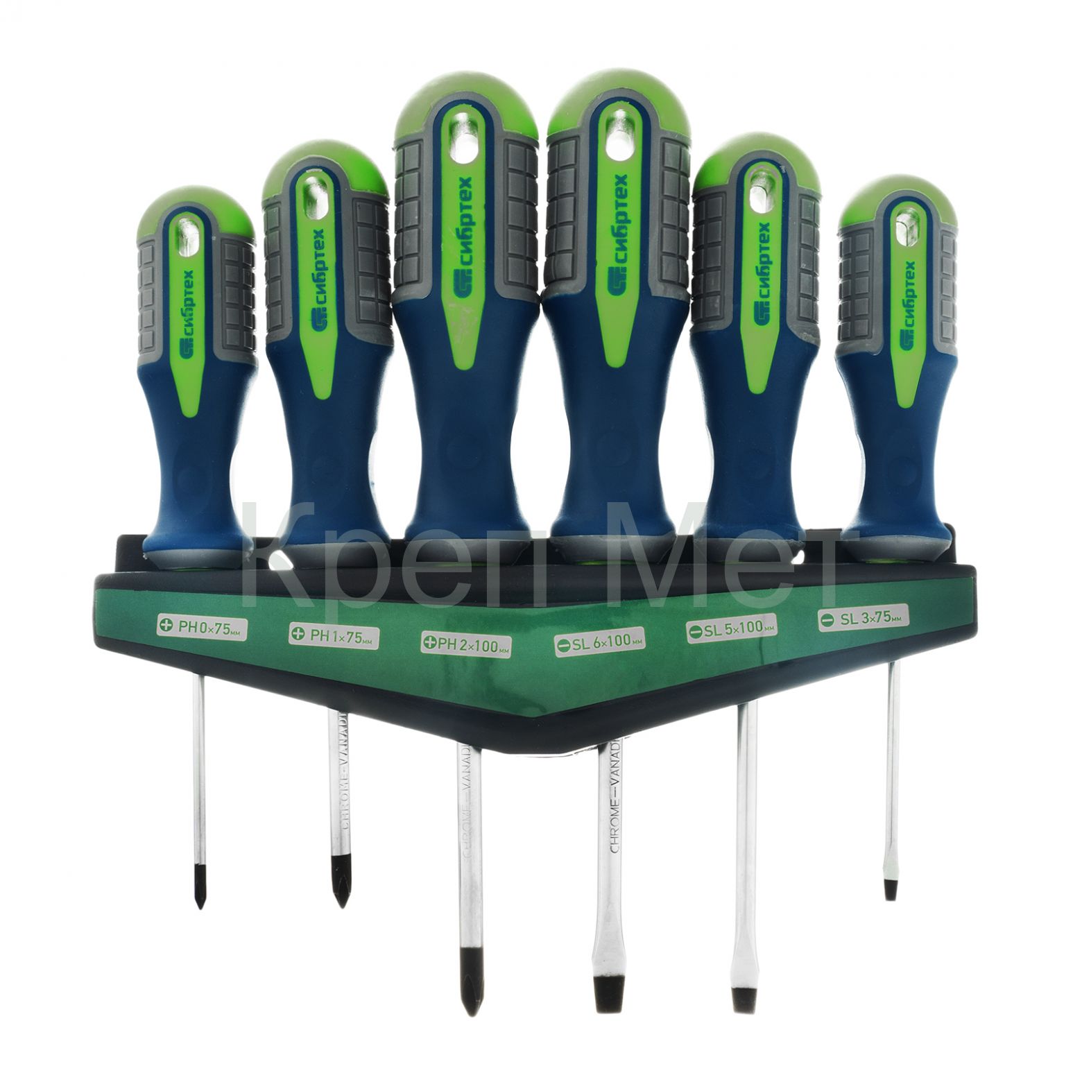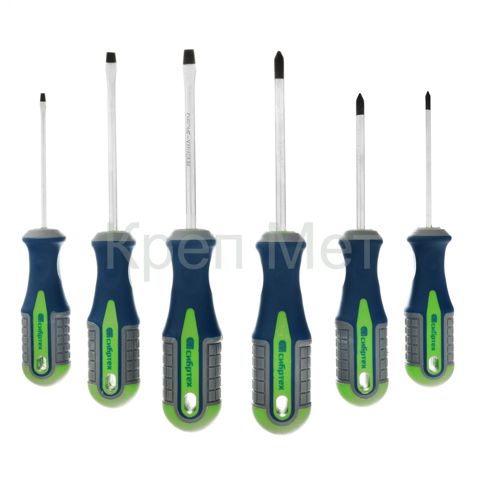 - Набор отверток, CrV, трехкомпонентные рукоятки, 6 предметов Сибртех