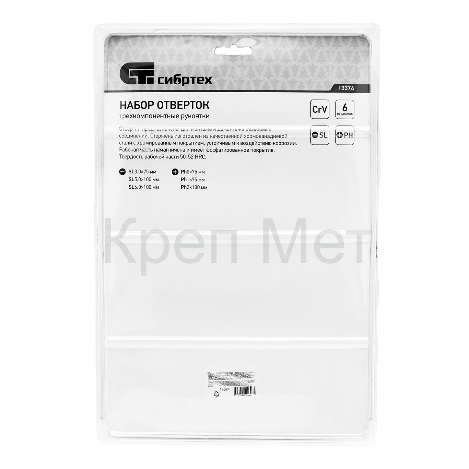 Набор отверток Сибртех 13374 включает в себя 6 предметов из стали CrV с трехкомпонентными рукоятками, которые будут полезны мастерам при осуществлении несложных ремонтных и монтажных работ. С их помощью можно производить монтаж/демонтаж резьбового крепежа с профилем SL и PH. Длина стержней отверток составляет 75-100 мм для удобства работы с крепежом на поверхностях и в небольших углублениях.