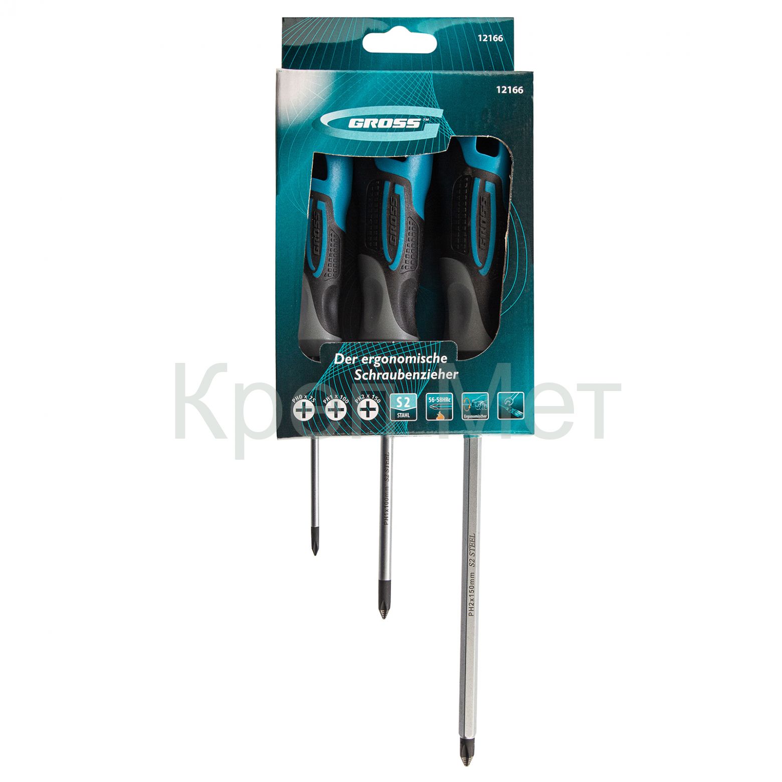 - Набор отверток PH, 3 шт, S2, трехкомпонентная рукоятка Gross