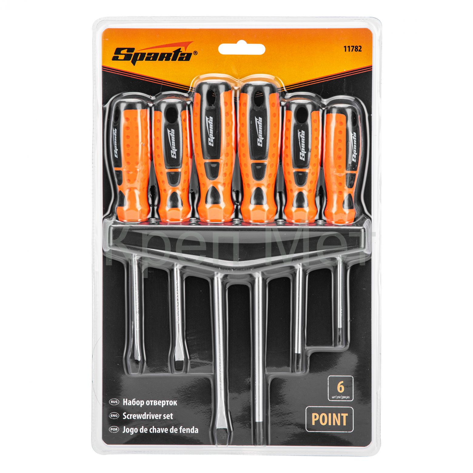 - Набор отверток "Point", CrV, двухкомпонентные рукоятки, 6 шт, Sparta
