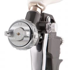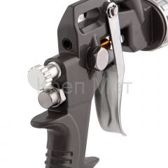 - Контроль количества краски — бак краскораспылителя выполнен из прозрачного пластика, а благодаря верхнему расположению его удобно заправлять.