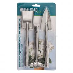 Набор по уходу за комнатными растениями Palisad LUXE 62909 состоит из 3 цельнометаллических предметов и позволяет рыхлить, вскапывать, насыпать грунт, формировать лунки и борозды. Материал инструментов — нержавеющая сталь, поэтому они не боятся коррозии и прослужат долго. Набор будет полезен любителям домашнего растениеводства и владельцам дачных участков.
