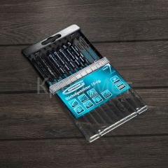 - Высокая твердость и износостойкость — все полотна в наборе выполнены из немецкой хромованадиевой стали.
