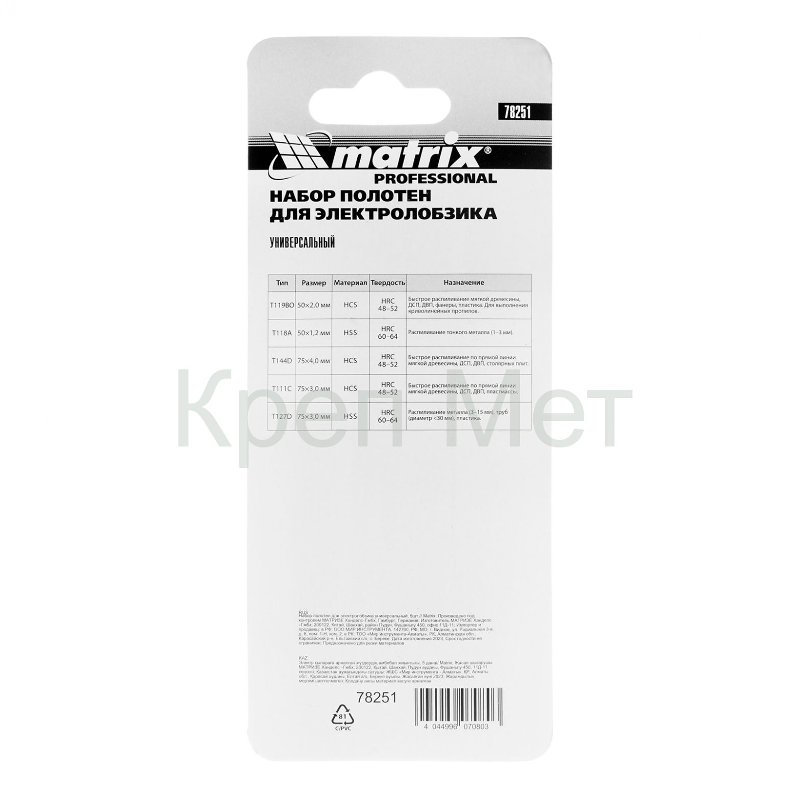 Универсальный набор полотен для электролобзика Matrix 78251 из 5 шт. используется для распиливания металла, фанеры, древесины, пластика и эпоксидных материалов. Позволяет выполнять как грубую, так и точную распиловку. Пилки с Т-образным хвостовиком подходят к большинству современных электролобзиков. Набор будет полезен как профессионалу, так и домашнему мастеру.