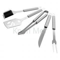 Набор приборов Palisad Camping 69579, 5 шт., поставляется в алюминиевом кейсе. Он значительно упрощает приготовление пищи на гриле или в мангале. Будет полезен на свежем воздухе во время пикника или на даче. В набор включено все необходимое для комфортной готовки мясных, рыбных деликатесов и овощей: универсальный нож, лопатка, щетка для чистки металла, вилка и щипцы.