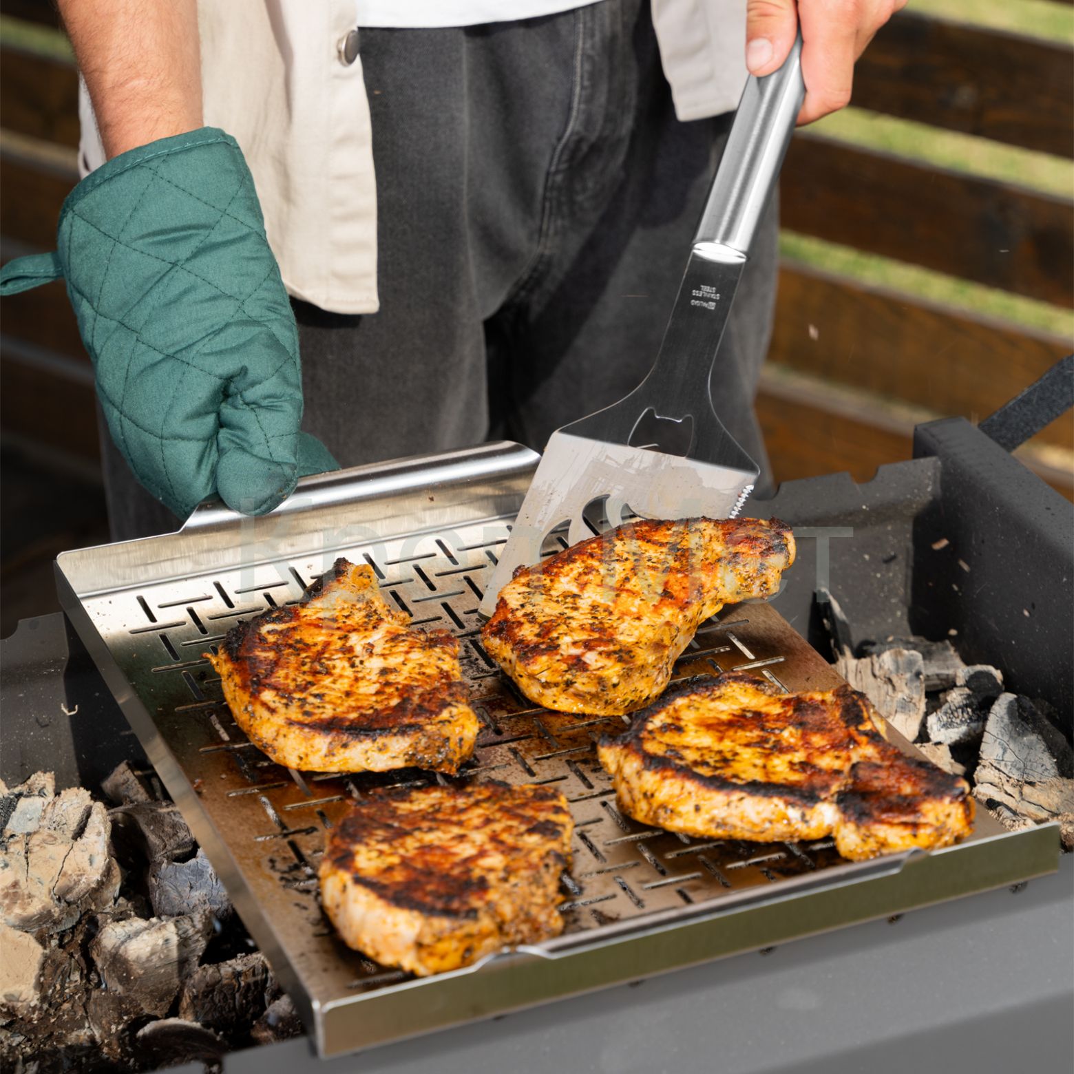 - Все предметы в наборе оснащены удлиненными рукоятками, которые не нагреваются для безопасной и удобной эксплуатации.