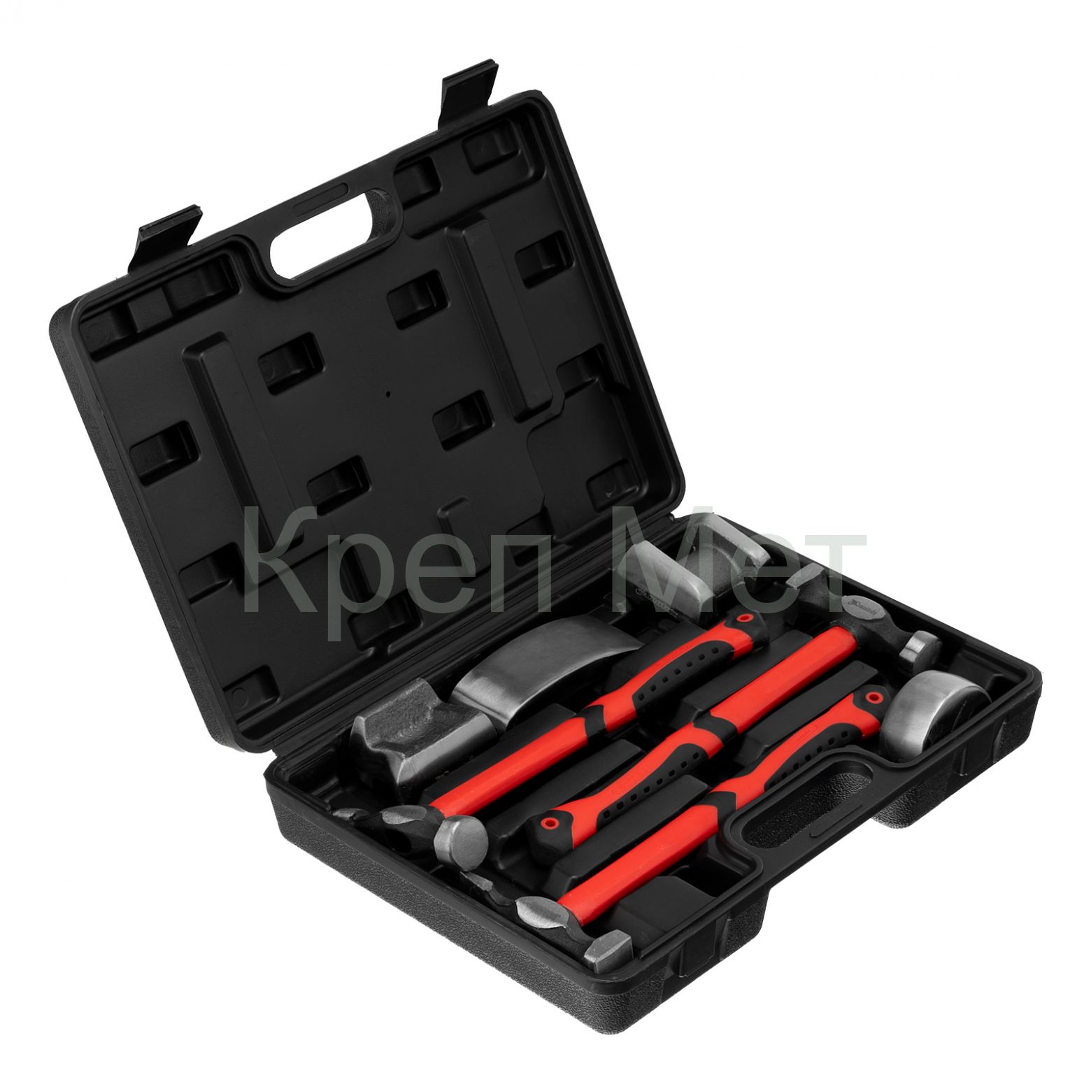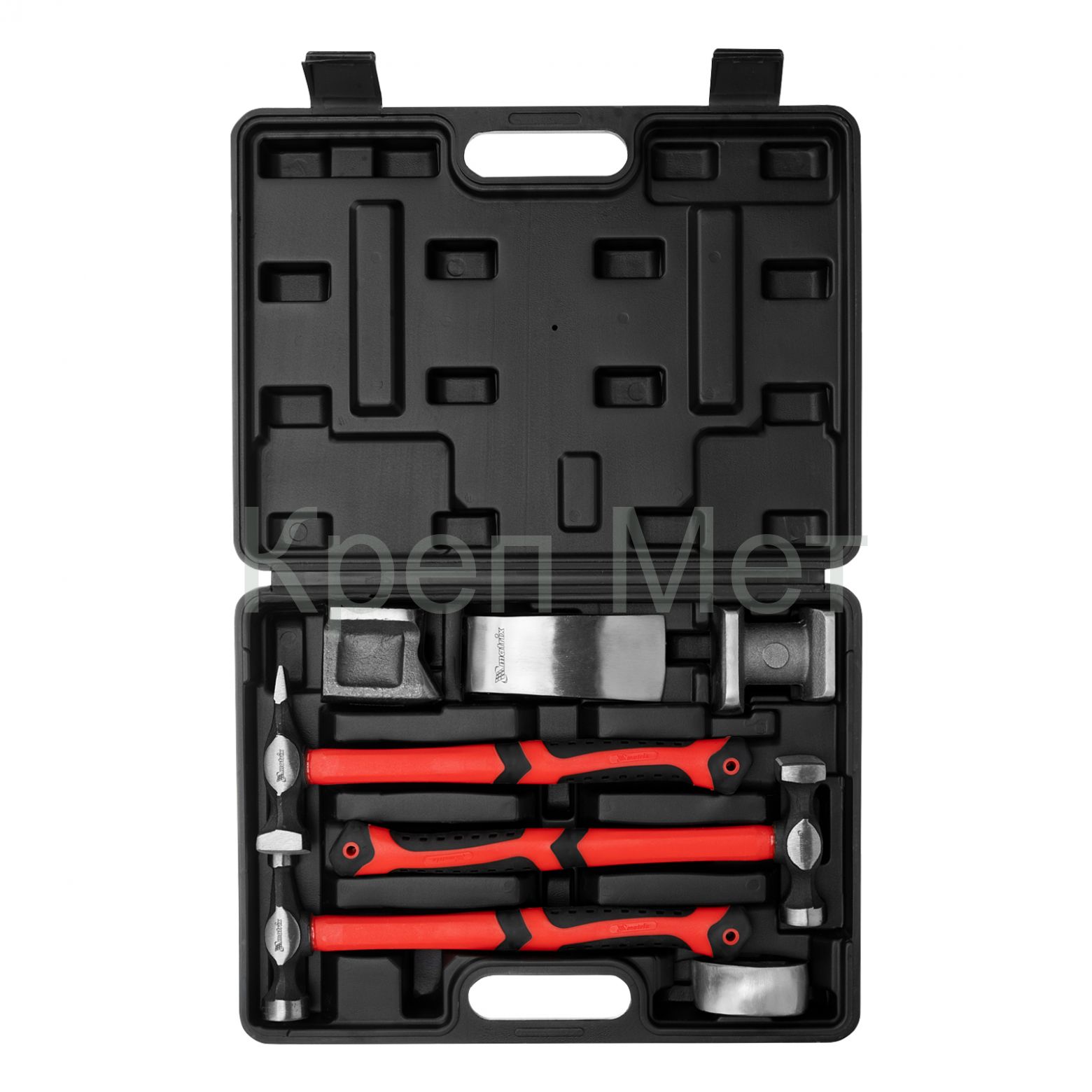 - Набор рихтовочный, 3 молотка с фибергласовыми ручками, 4 наковальни, пластиковый бокс Matrix