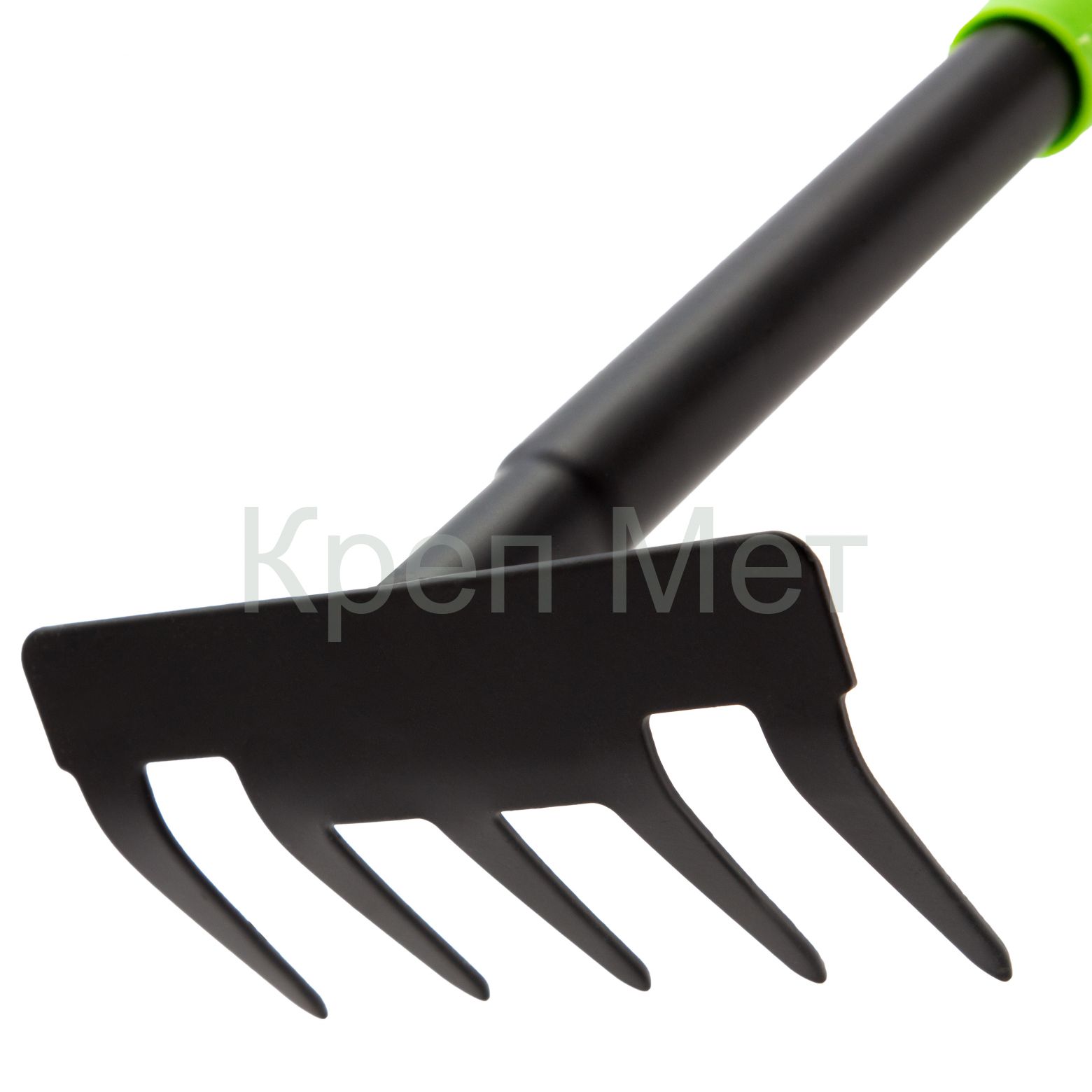 - Качественная аэрация — рыхлитель и классические грабли с заостренными зубьями легко проникают в почву.