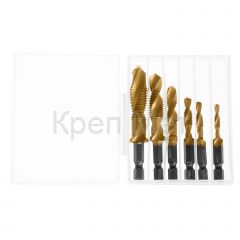 Сверло-метчик M4 x 0,7 мм - 1 штСверло-метчик M5 x 0,8 мм - 1 штСверло-метчик M6 x 1,0 мм - 1 штСверло-метчик M8 x 1,25 мм - 1 штСверло-метчик M10 x 1,5 мм - 1 штСверло-метчик M12 x 1,75 мм - 1 шт