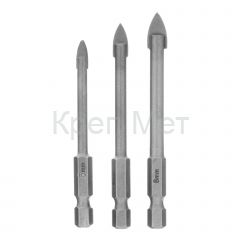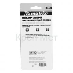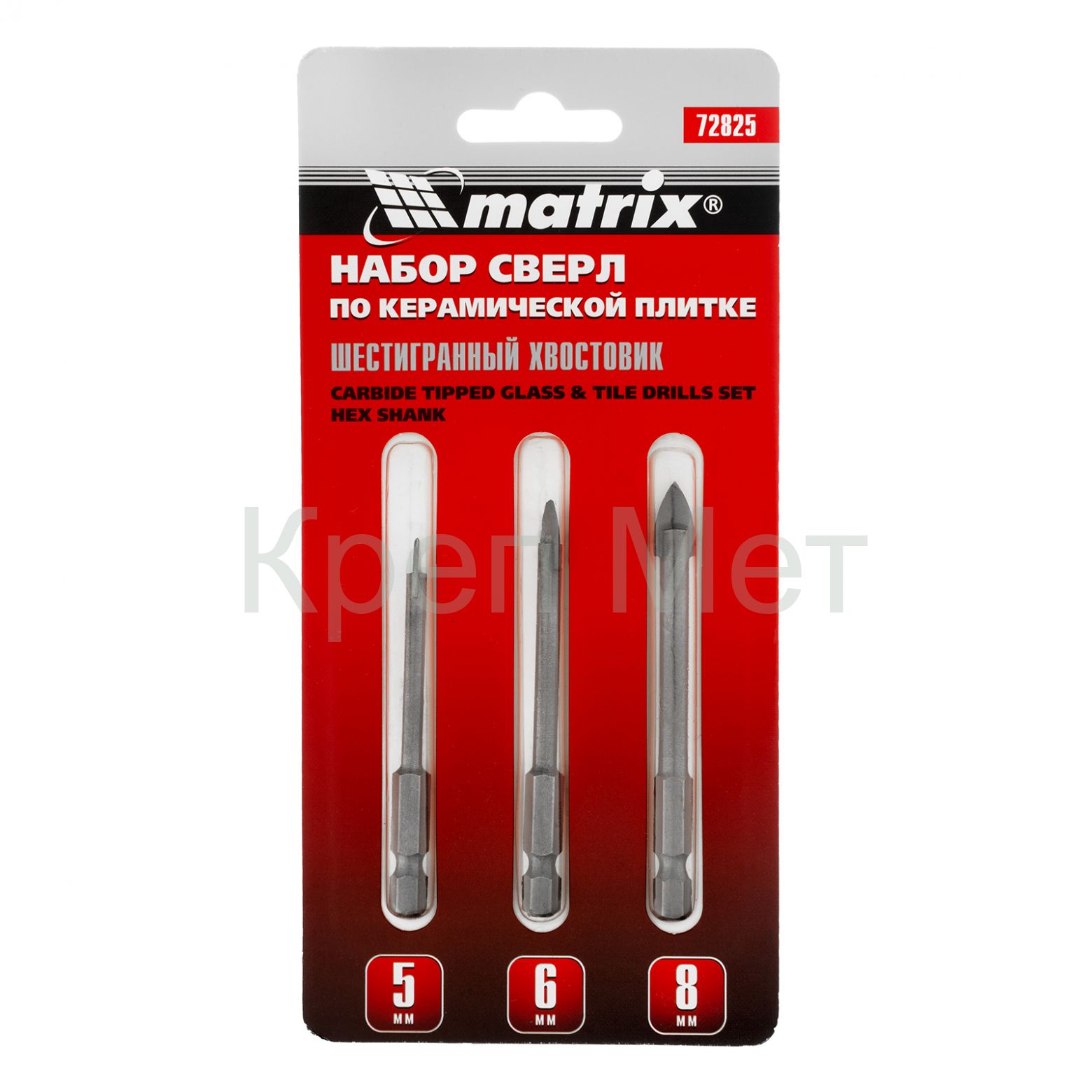 - Набор сверл по керамической плитке, 5-6-8 мм, шестигранный хвостовик Matrix