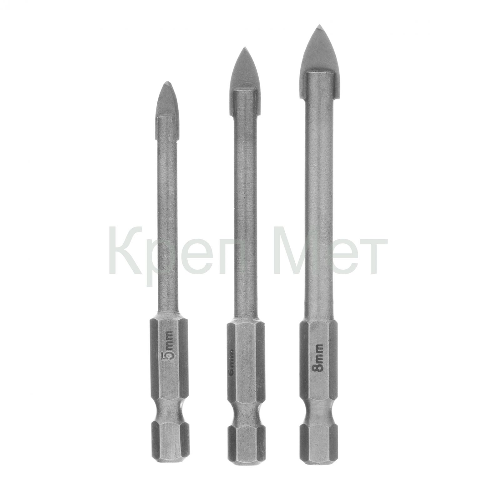 Набор сверл по керамической плитке, 5-6-8 мм, шестигранный хвостовик Matrix