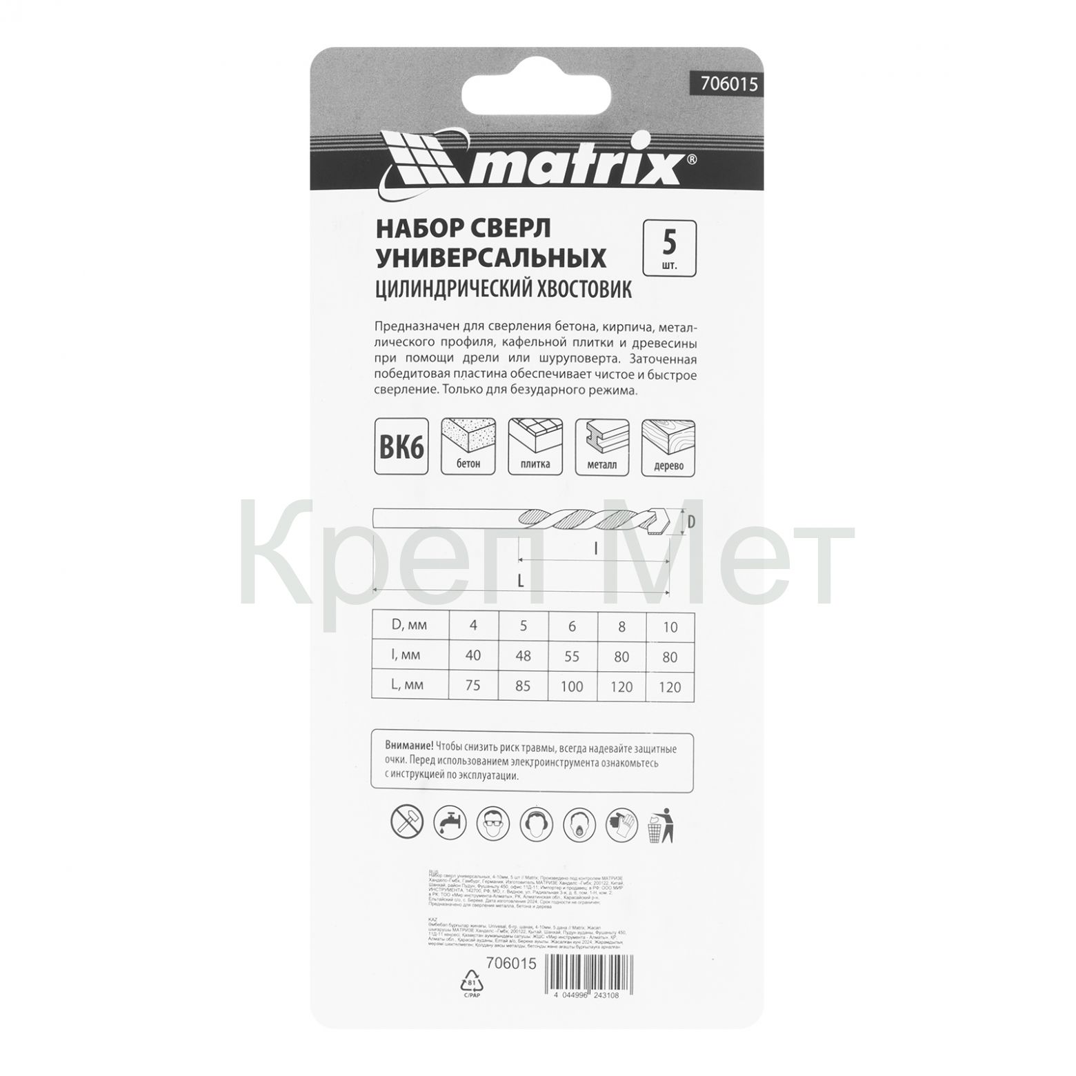 - Набор сверл универсальных, 4-10мм, 5 шт Matrix