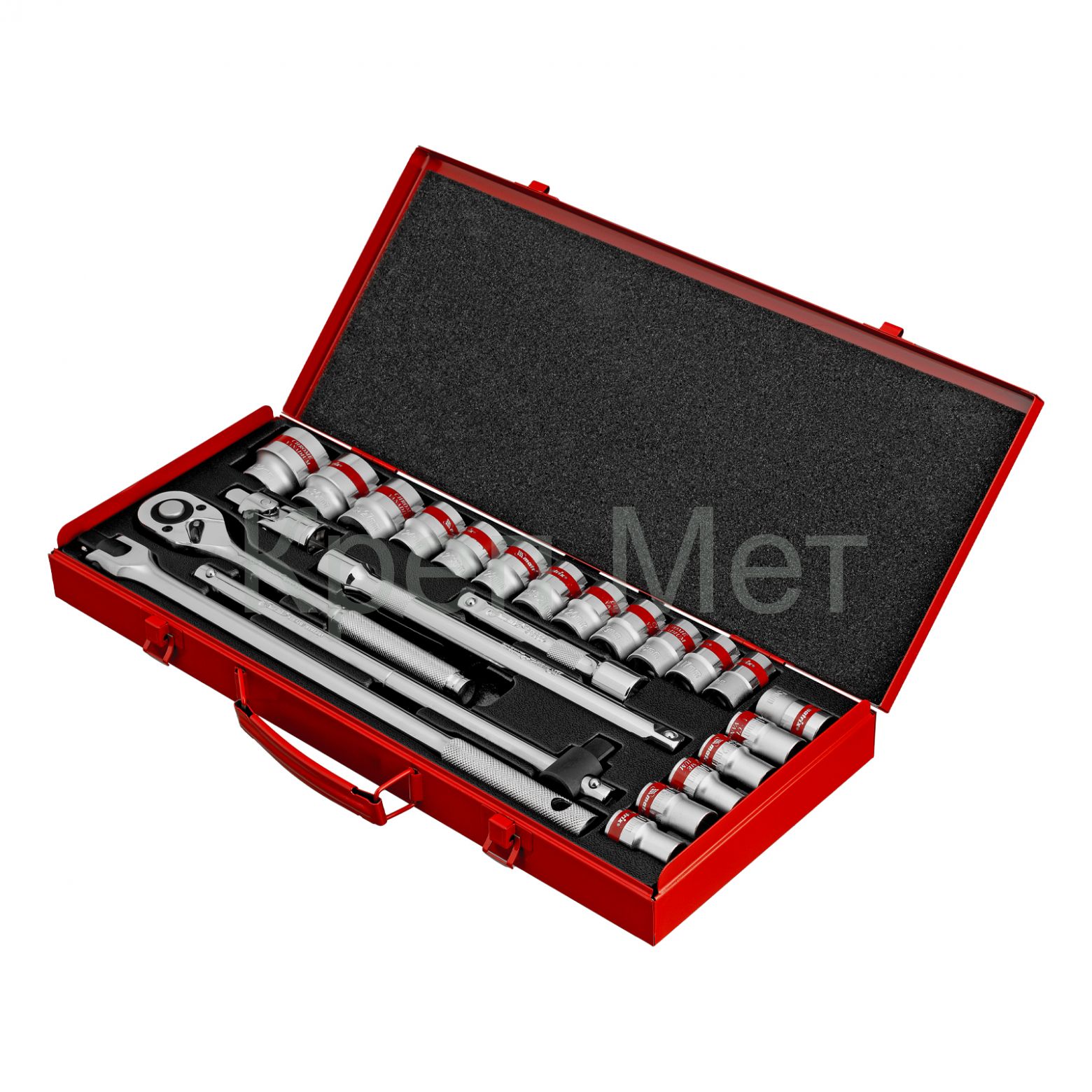 Набор Matrix 13582 состоит из 24 предметов с присоединительным квадратом 1/2" (торцевые головки, трещотка, удлинители. воротки, кардан), необходимых для проведения слесарно-монтажных работ любой сложности. 18 шестигранных торцевых головок диаметром от 10 до 32 мм позволяют решать широкий спектр задач. Воротки, удлинители и шарнирный кардан облегчают работу в труднодоступных местах. Набор пригодится автолюбителям и работникам автосервисов.