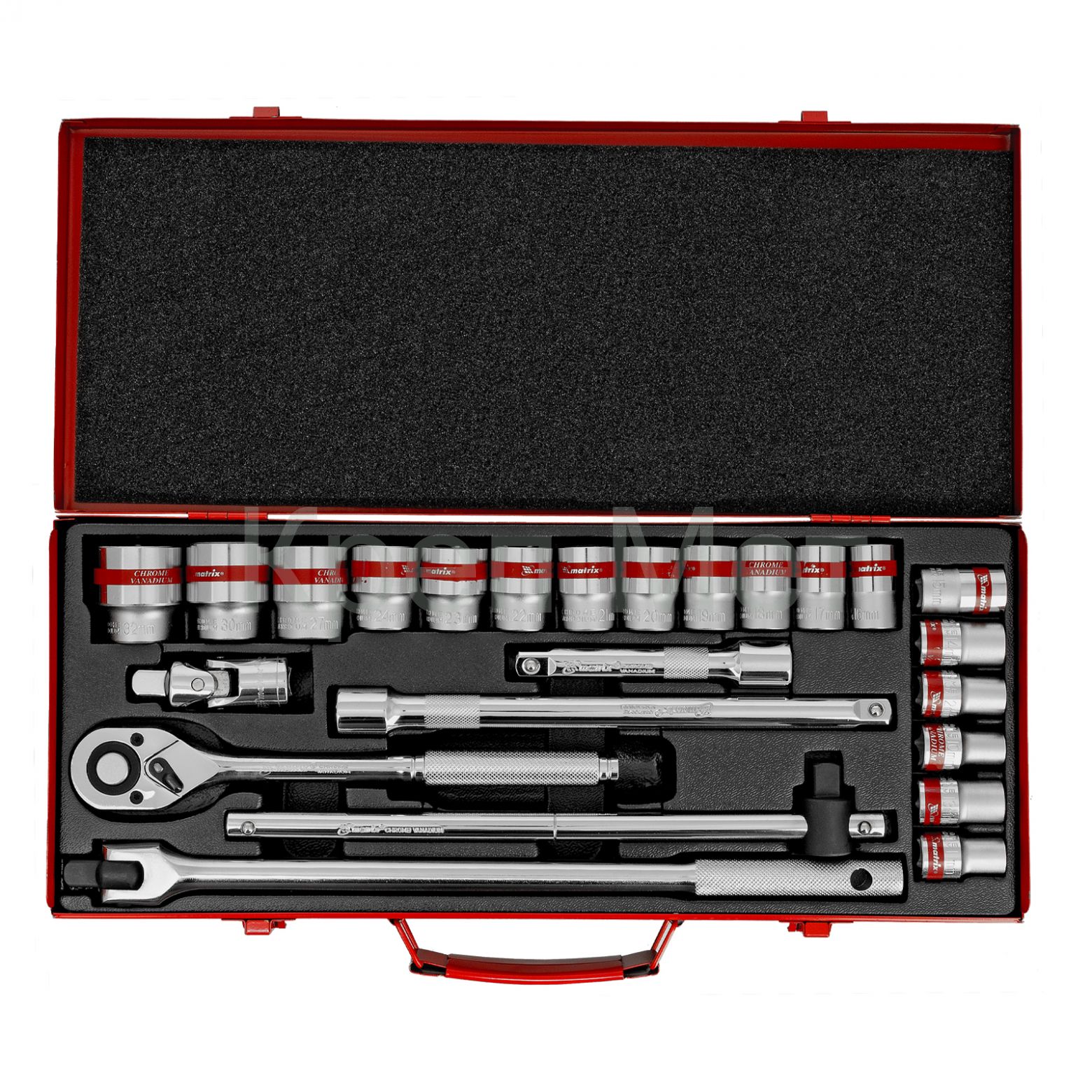 - Набор торцевых головок с трещоткой 1/2", 24 предмета Matrix