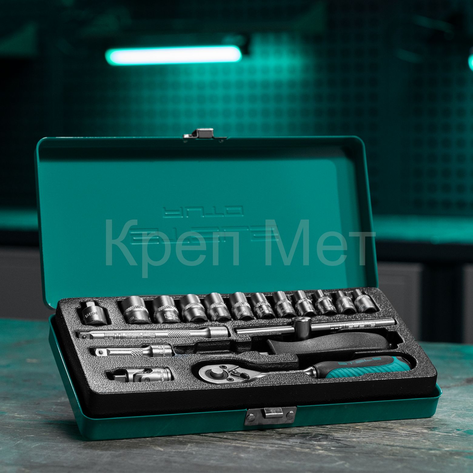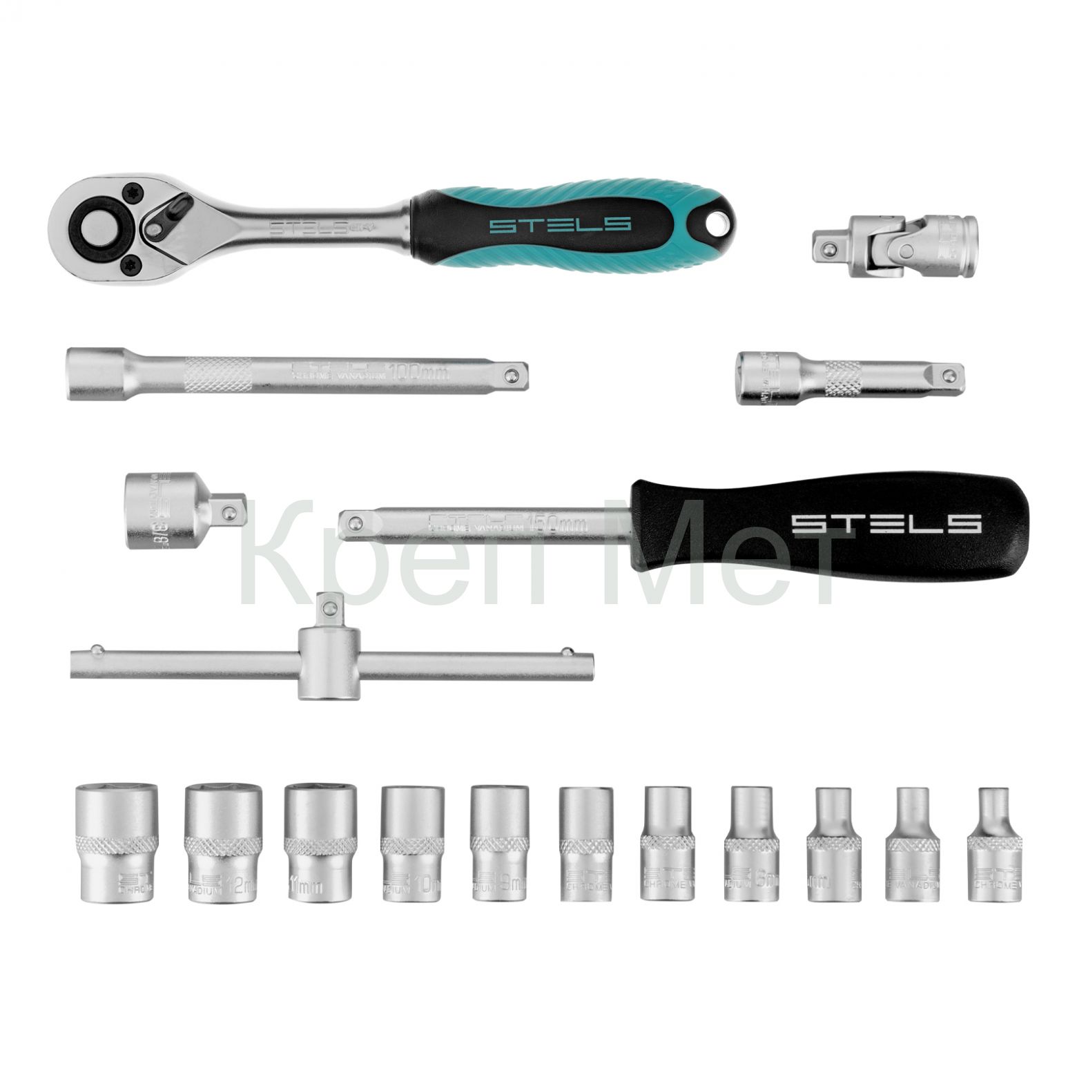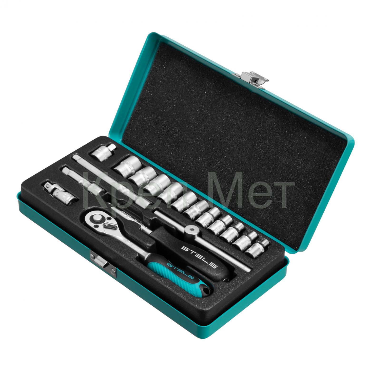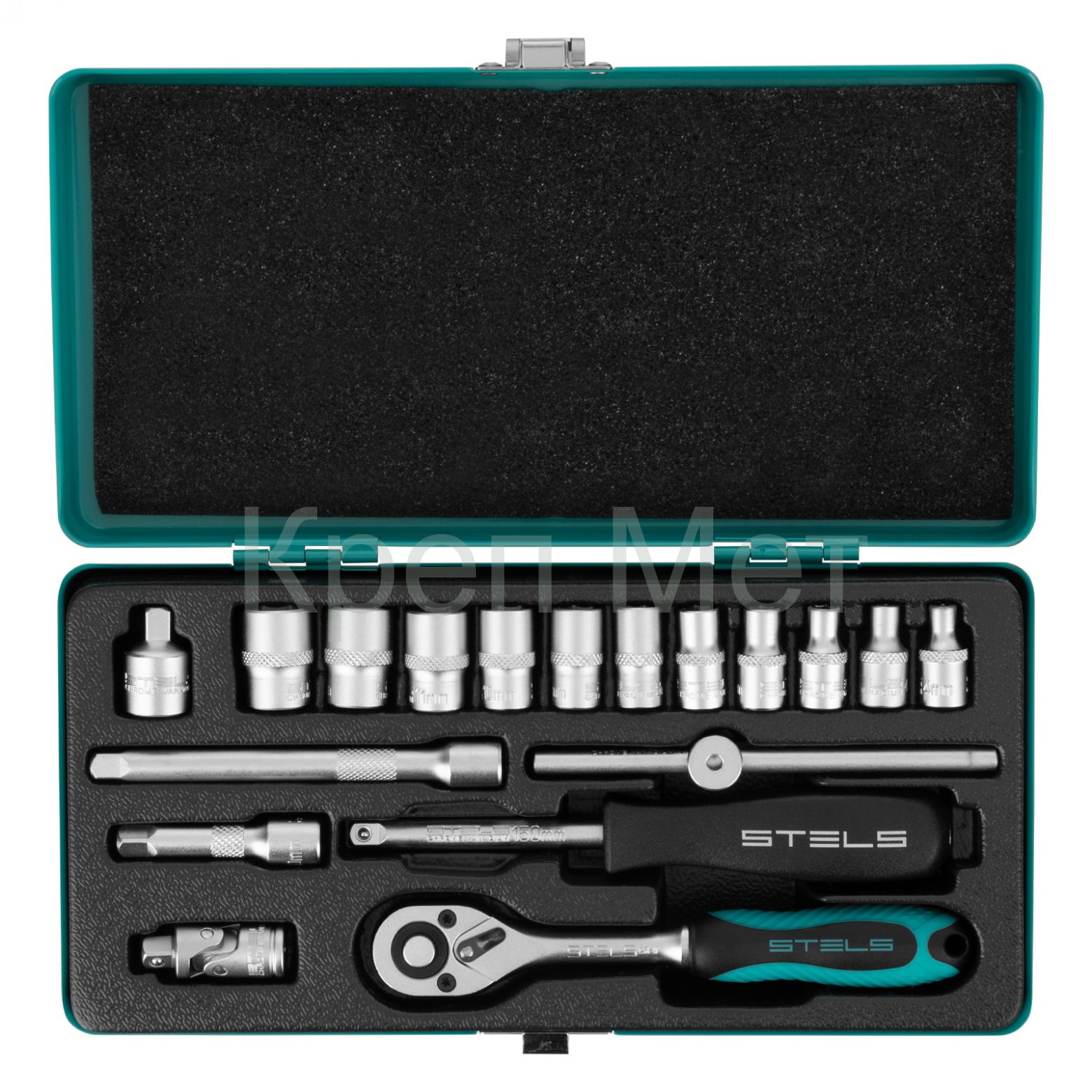 - Набор торцевых головок с трещоткой, 1/4", 18 предметов Stels