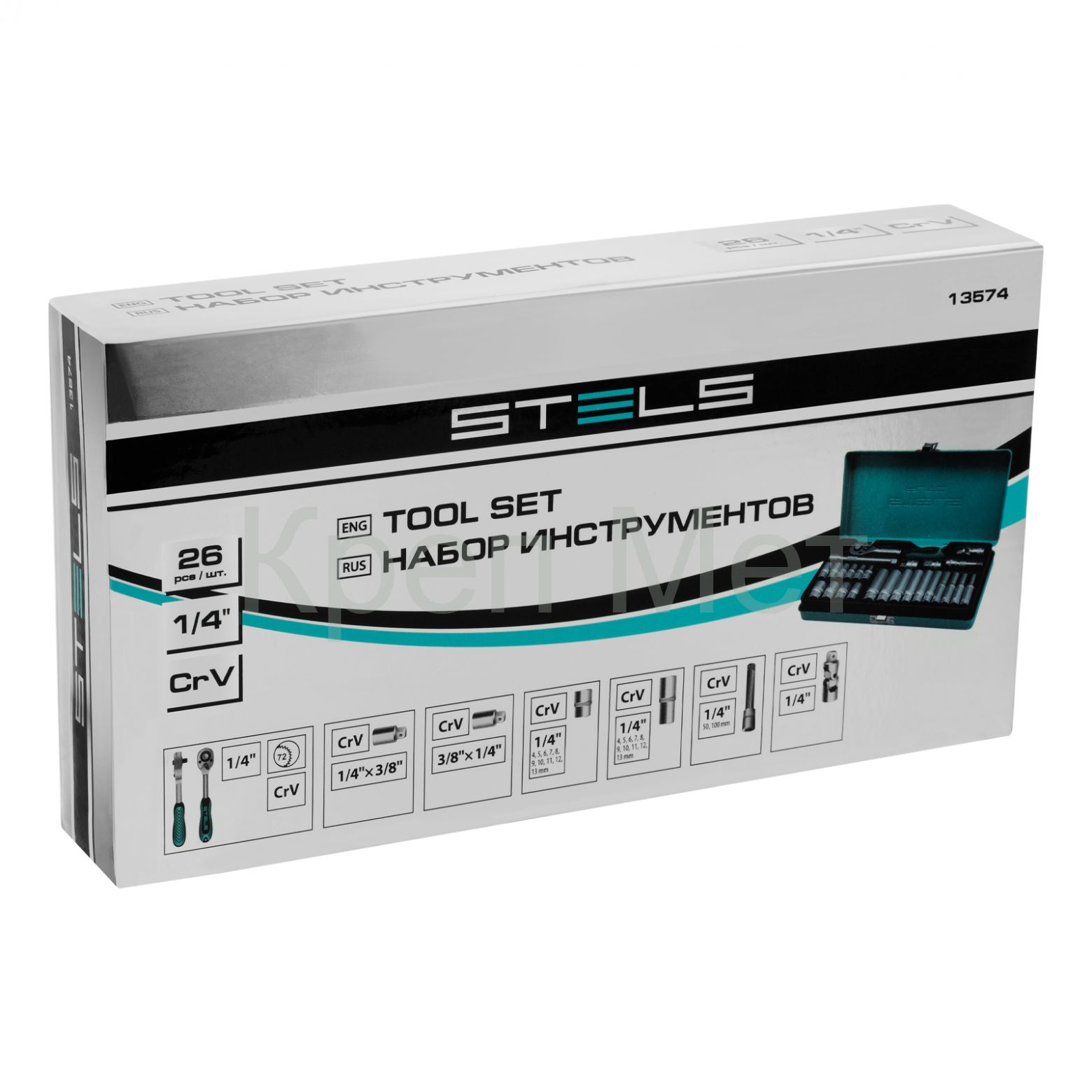 - Набор торцевых головок с трещоткой, 1/4", 26 предметов Stels