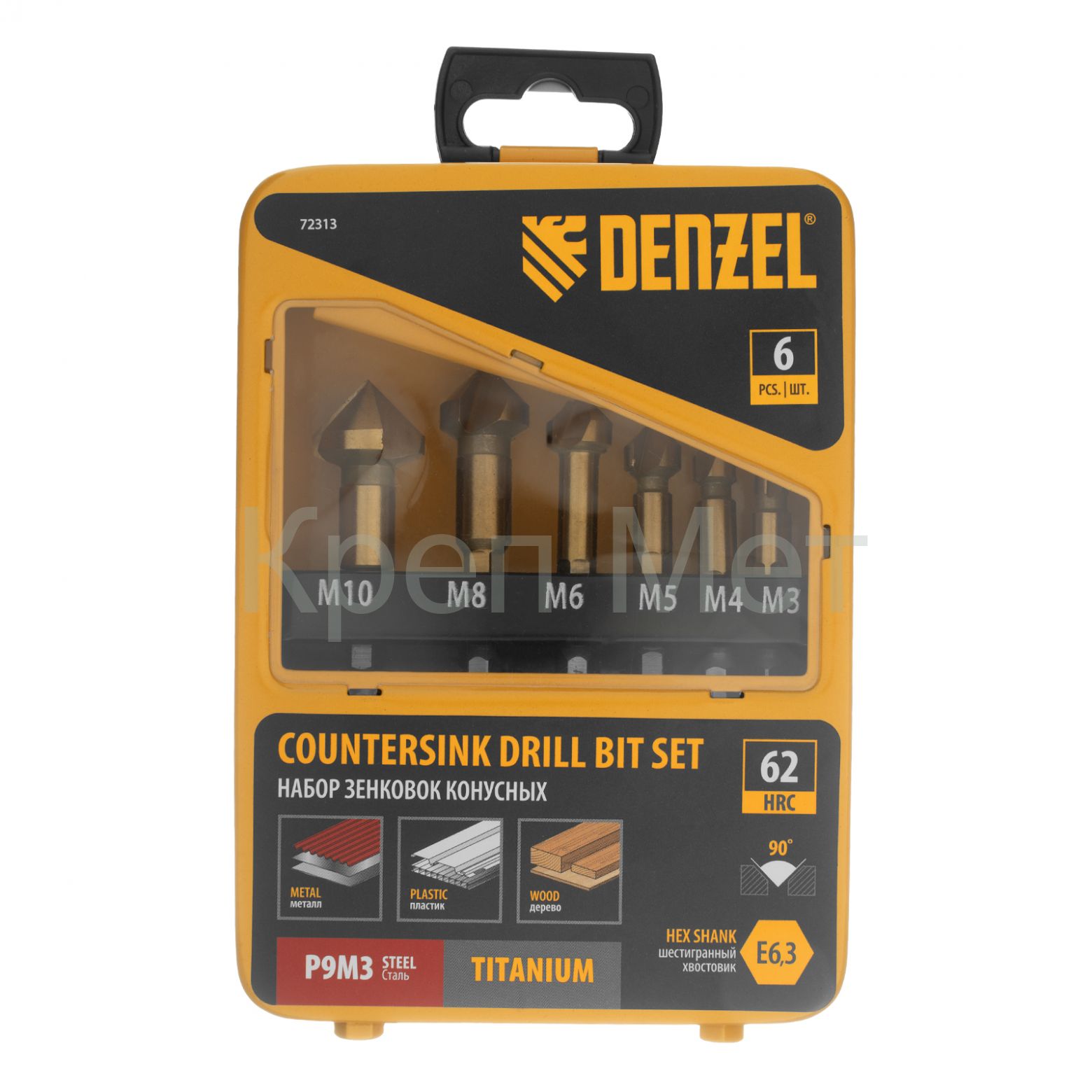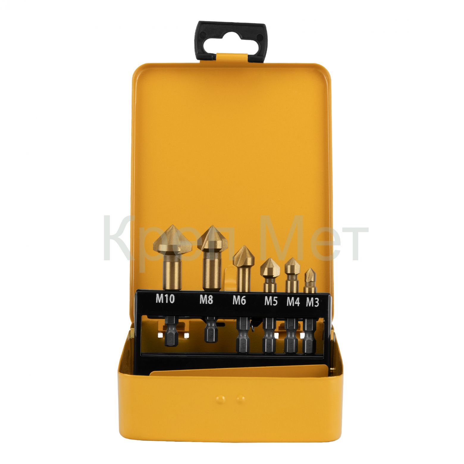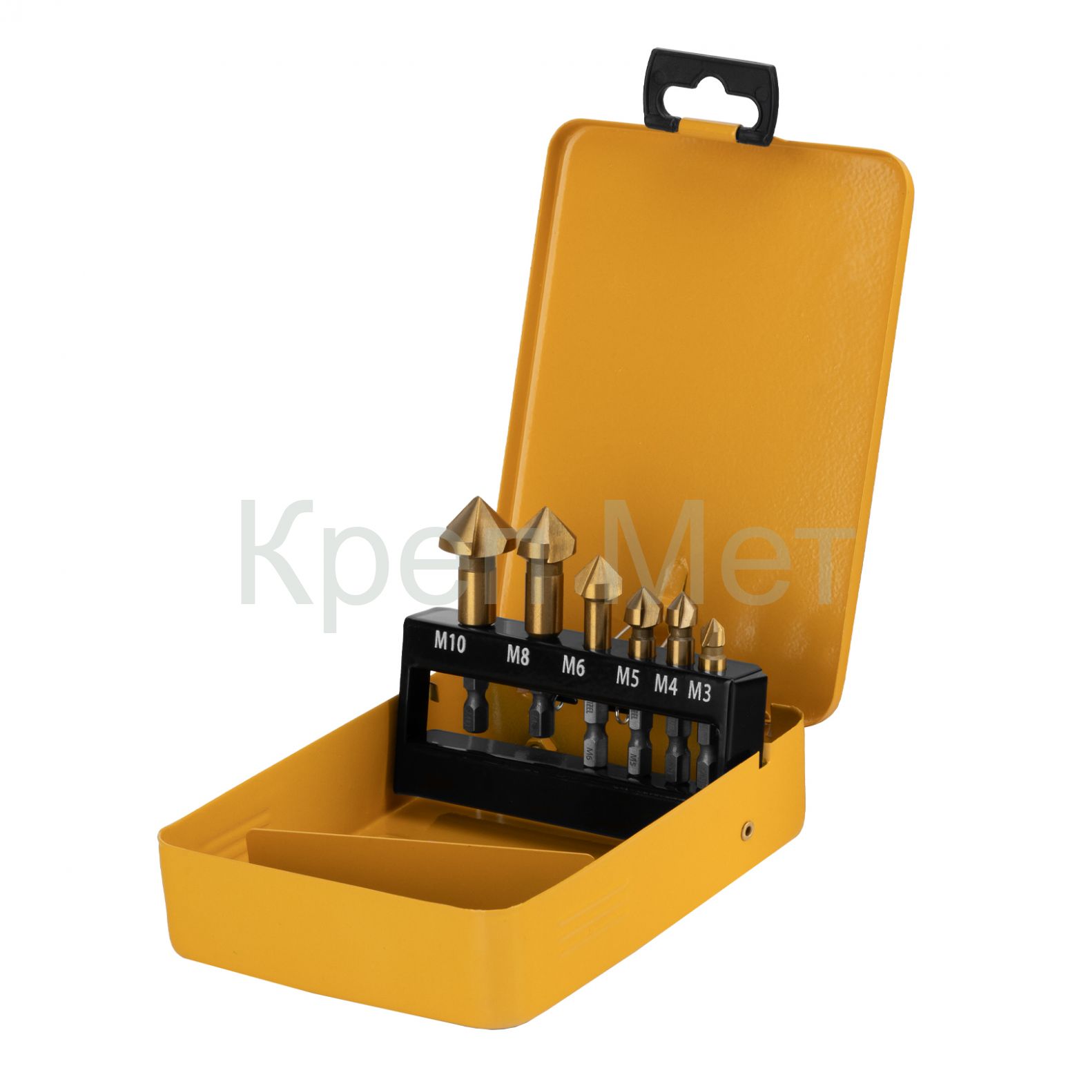 - Набор зенковок, HSS, M3-M10, 6 шт, металл. кейс // Denzel