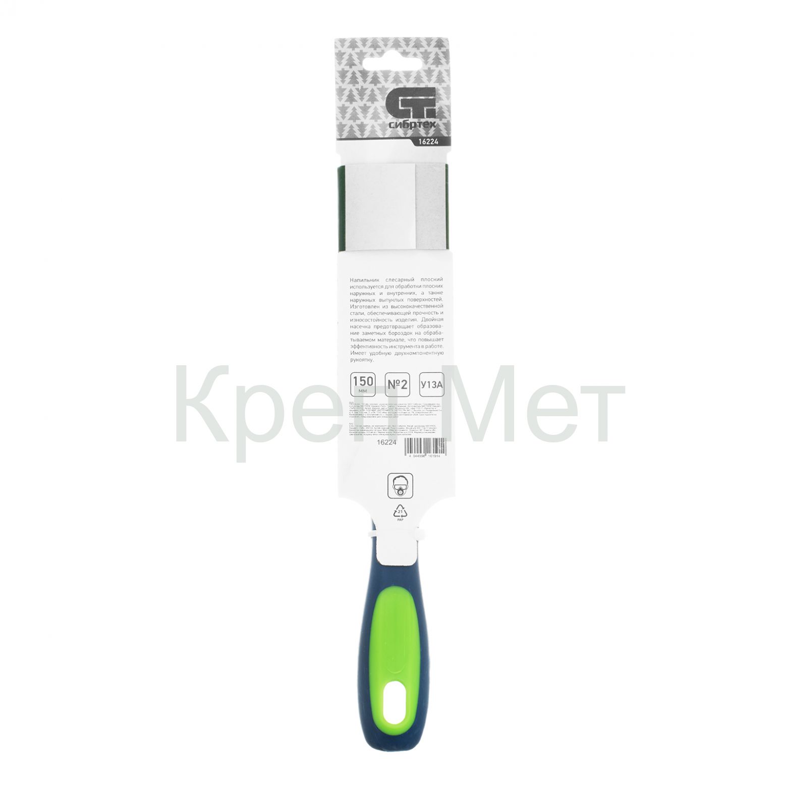 - Напильник, 150 мм, плоский, двухкомпонентная рукоятка, №2 Сибртех