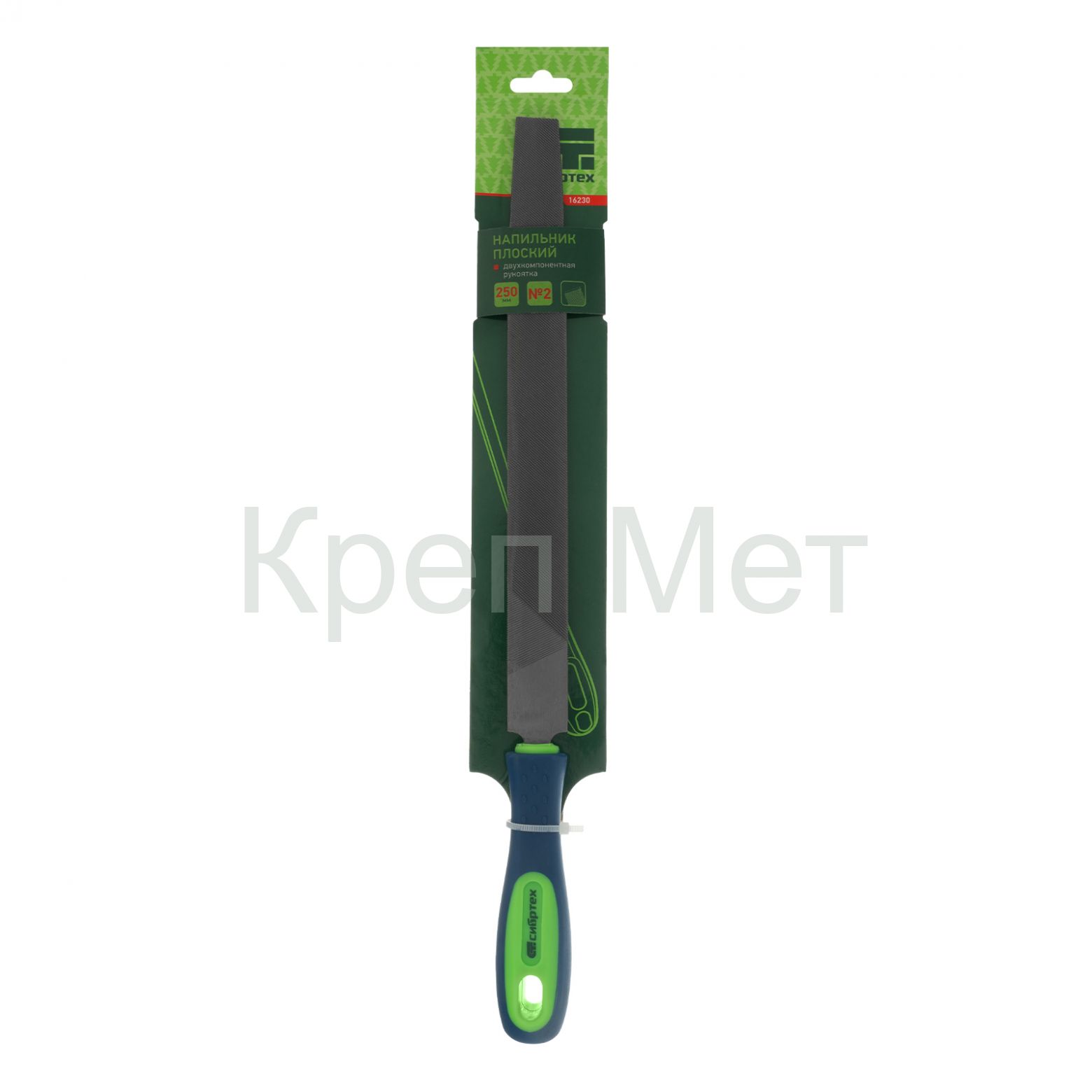 - Напильник, 250 мм, плоский, двухкомпонентная рукоятка, №2 Сибртех