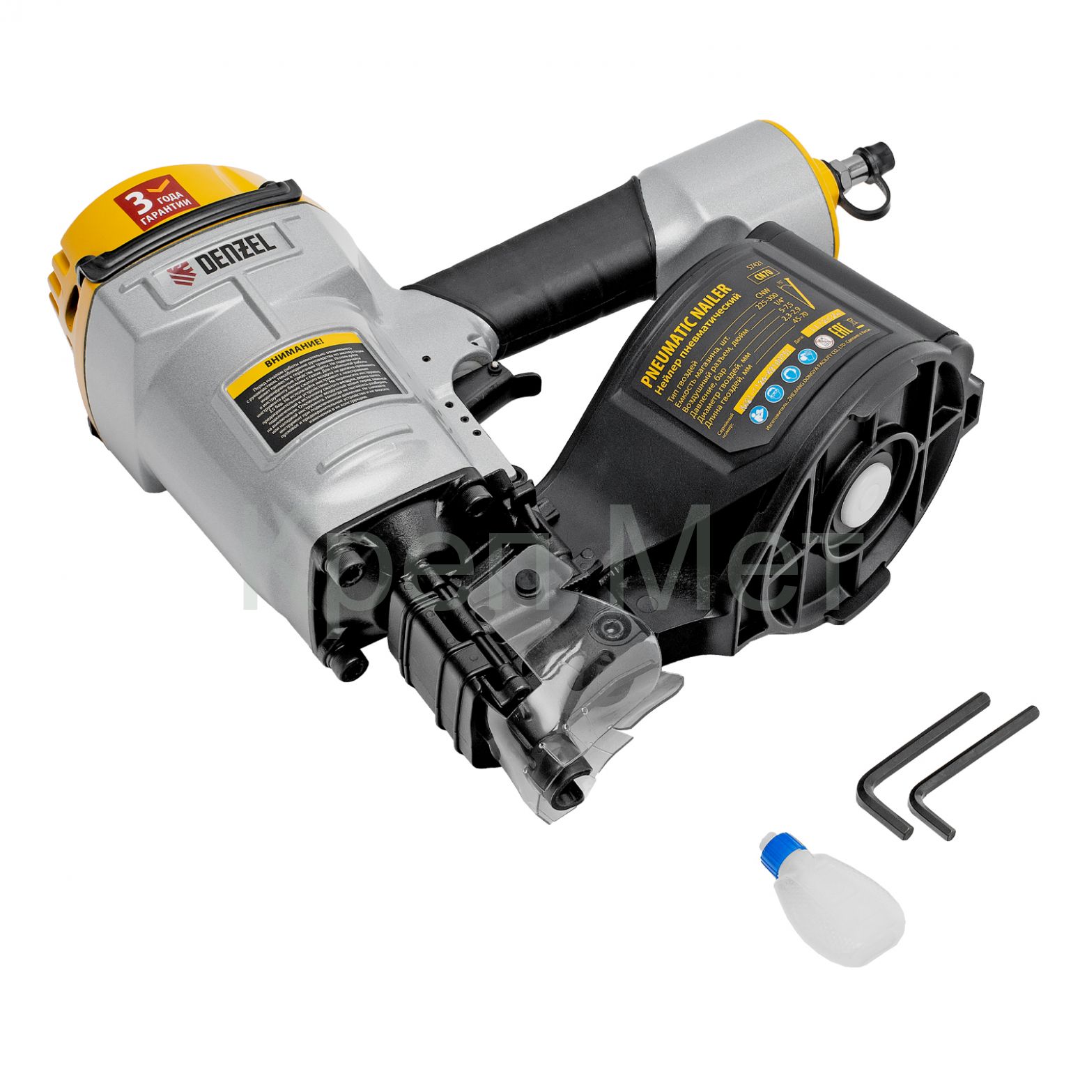 - Гарантия 3 года — надежность пневматического нейлера подтверждена производителем.