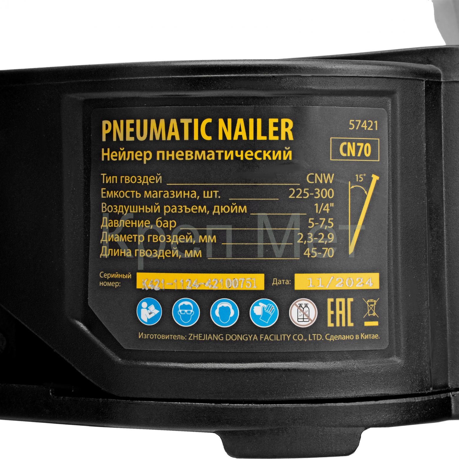 - Нейлер пневматический CN70 для гвоздей CNW от 45 до 70 мм// Denzel