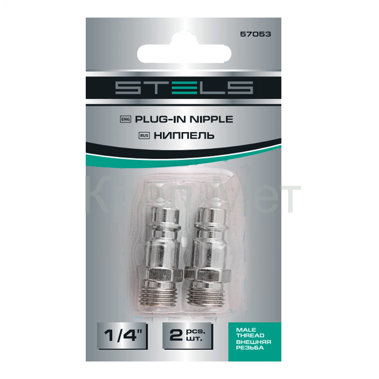 - Ниппель универсальный быстросъемный ("папа") 1/4, внешняя резьба, 2 шт, Stels