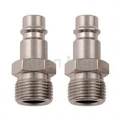 Универсальный быстросъемный ниппель Stels 57059, 2 шт. в упаковке, предназначен для перехода с внешней резьбы 3/8 дюйма на рапид типа «папа» для соединения пневматического шланга и компрессора. Используется для работы с пневмоинструментом, будет полезен на строительной площадке, в гараже и автосервисе.