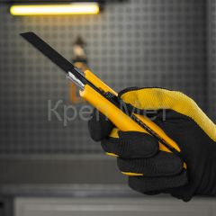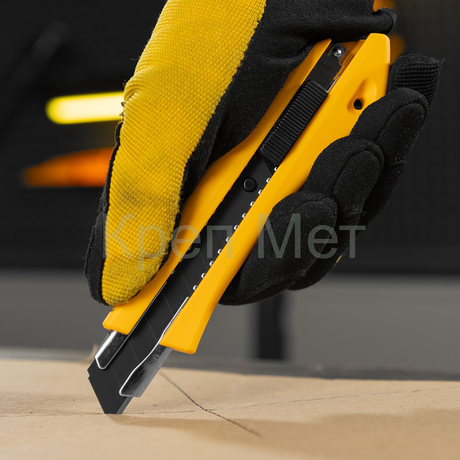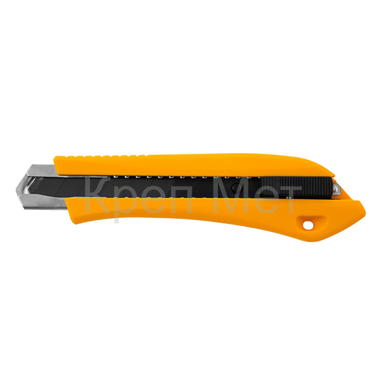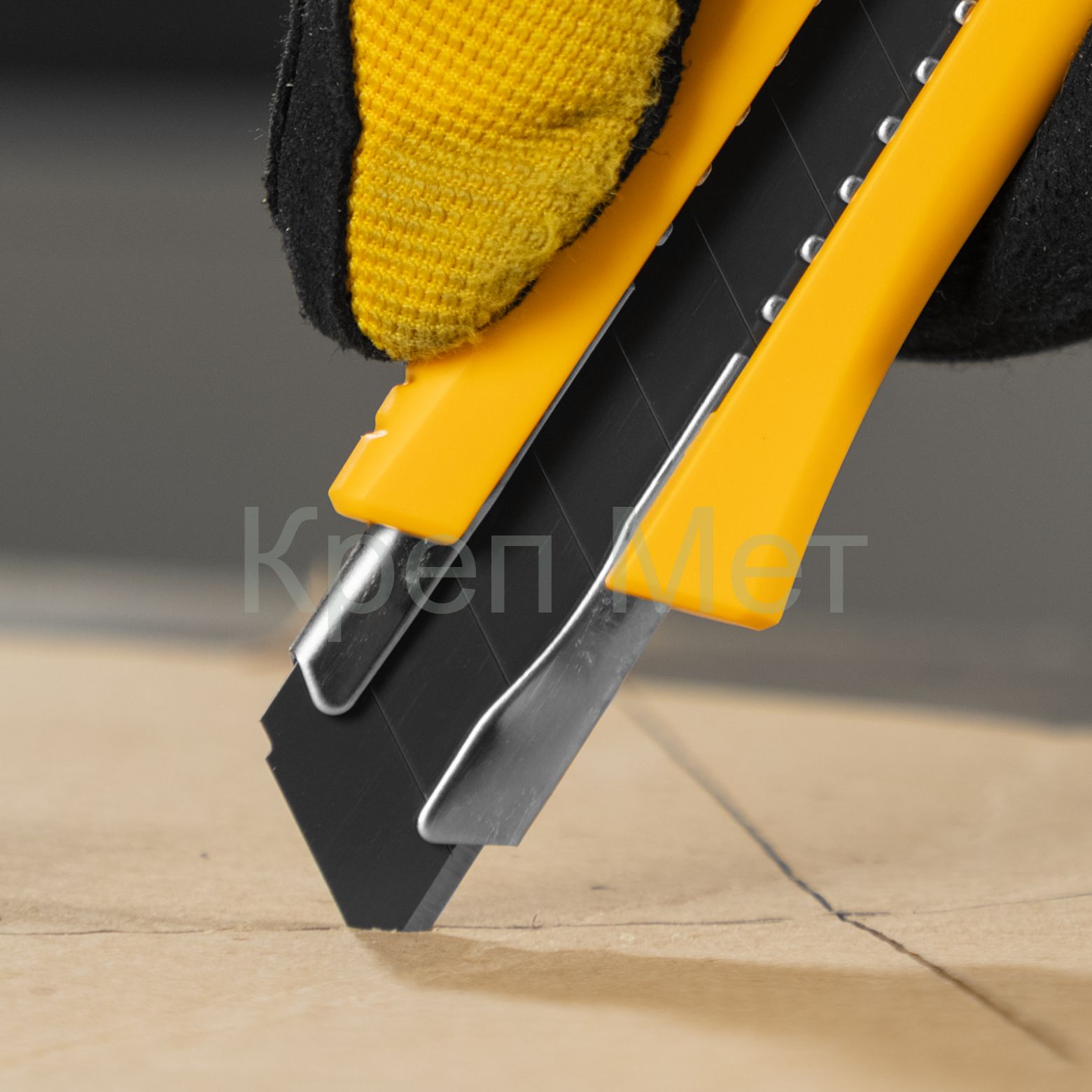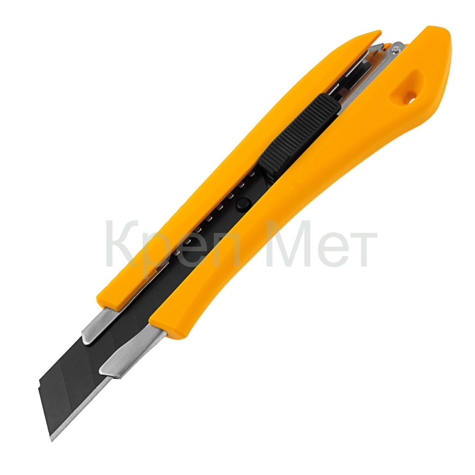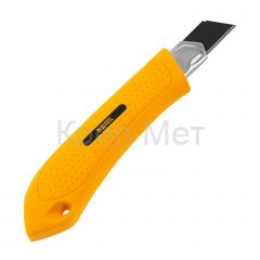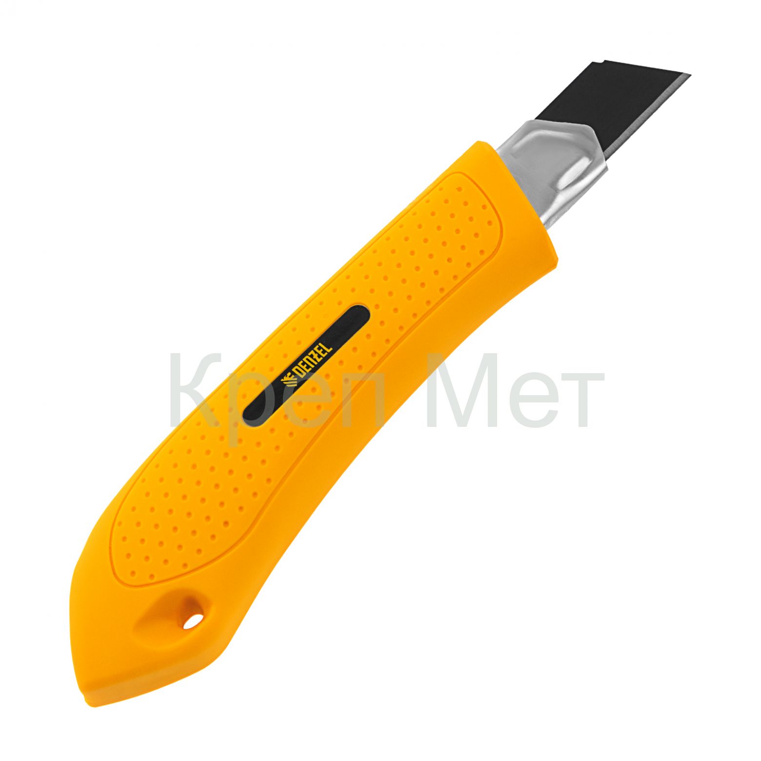 - Нож, 18 мм, сменное лезвие, SK4, метал. направляющая, нажимной фиксатор Denzel