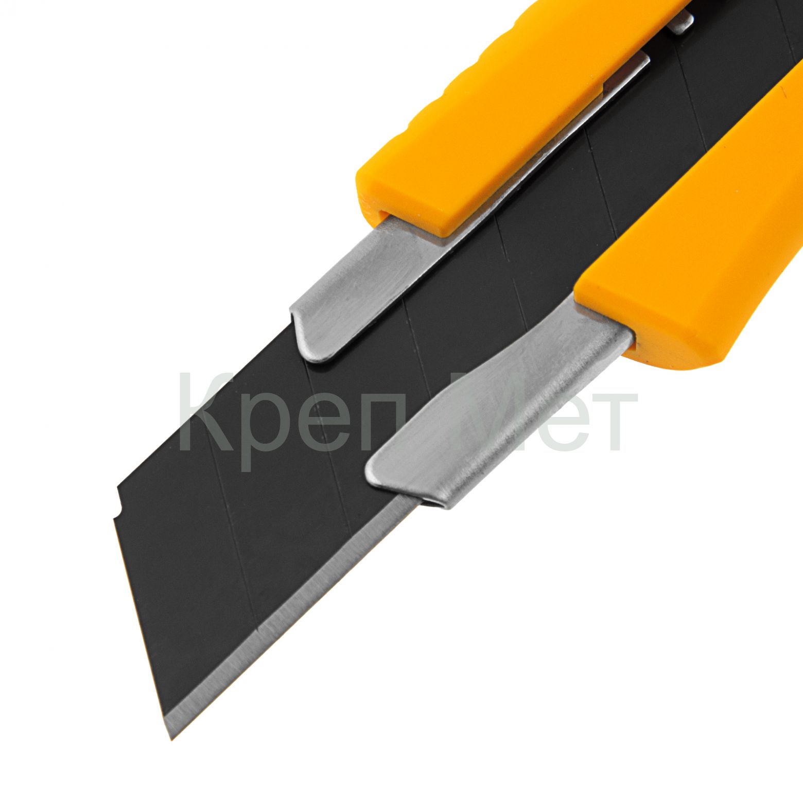 - Удобное использование — нажимной фиксатор удерживает лезвие в нужном положении.