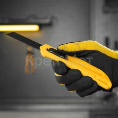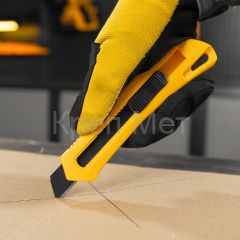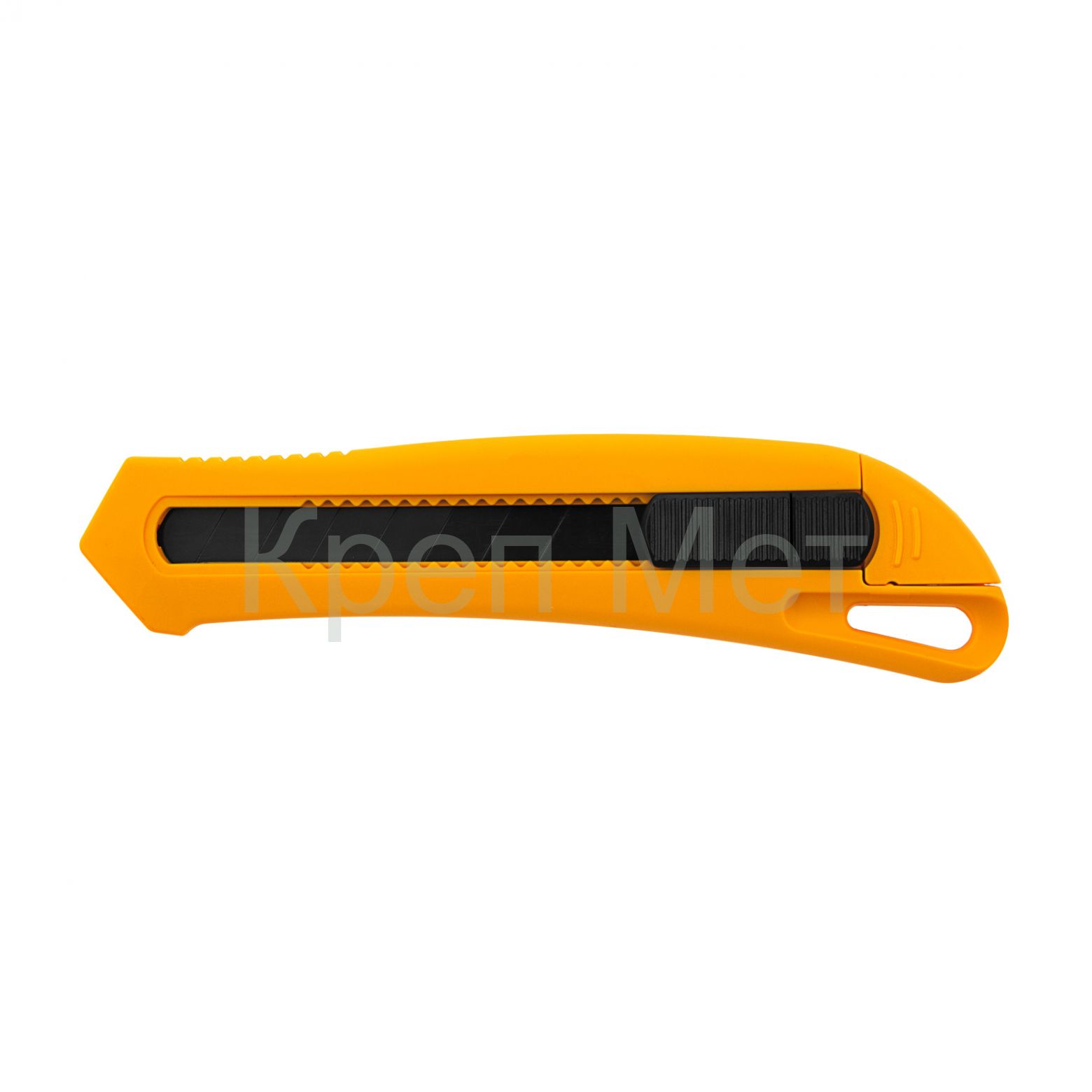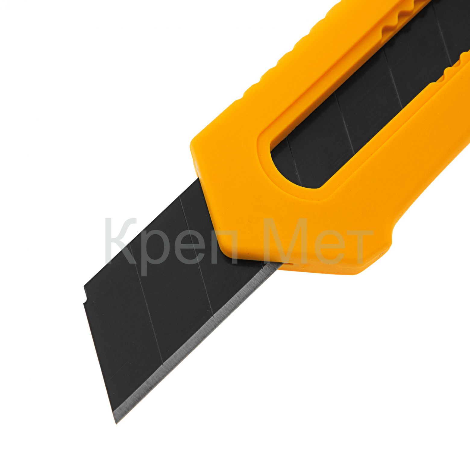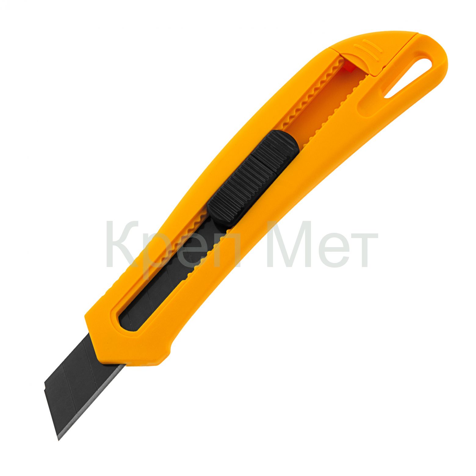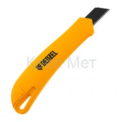 - Нож, 18 мм, сменное лезвие, SK4, облегченный корпус, нажимной фиксатор Denzel