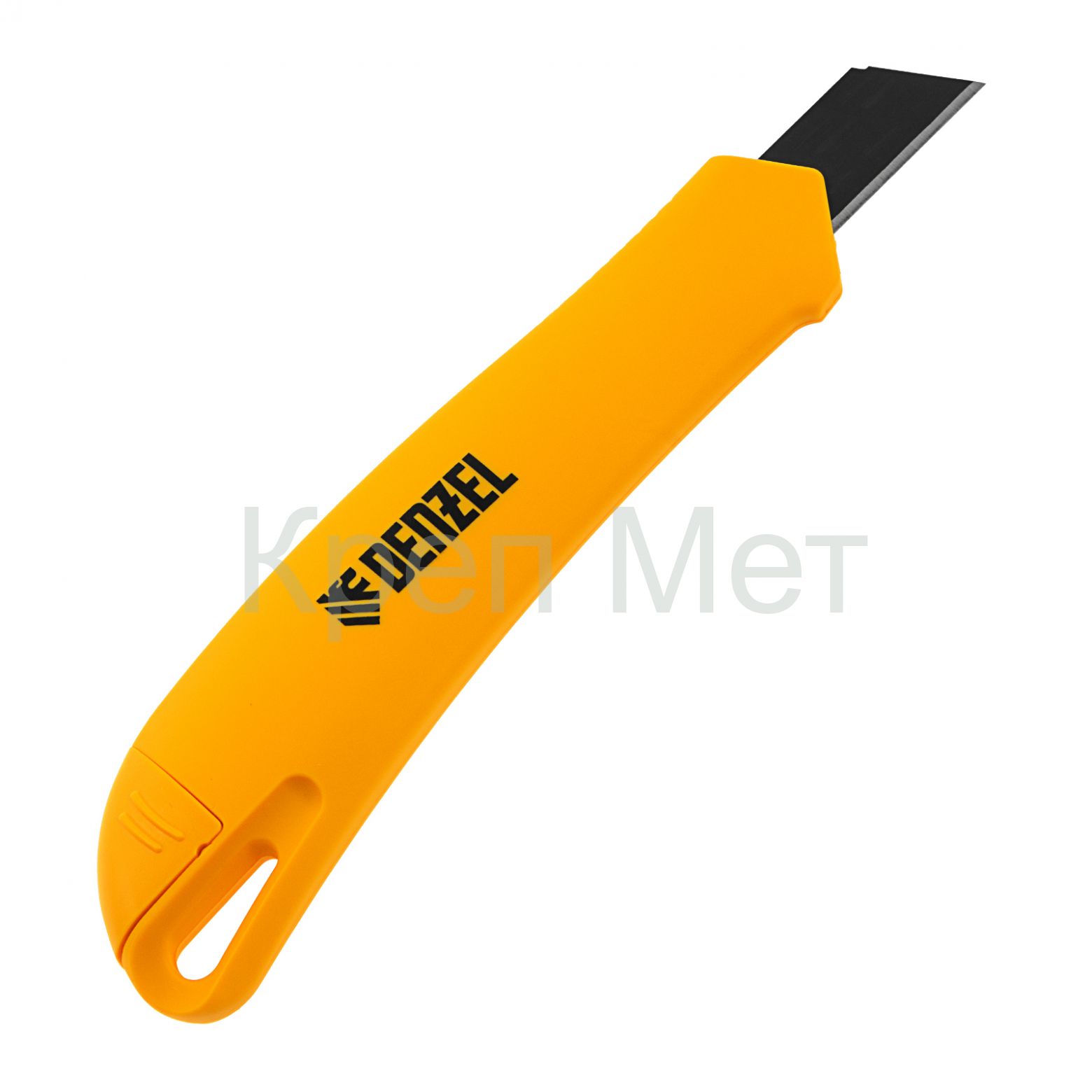 Нож, 18 мм, сменное лезвие, SK4, облегченный корпус, нажимной фиксатор Denzel