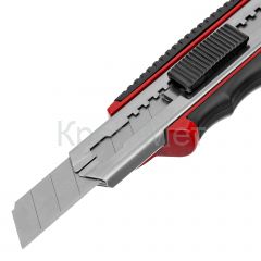 - Нож, 18 мм, выдвижное лезвие, металлическая направляющая, обрезиненная ручка, 5 лезвий Matrix