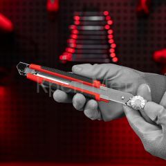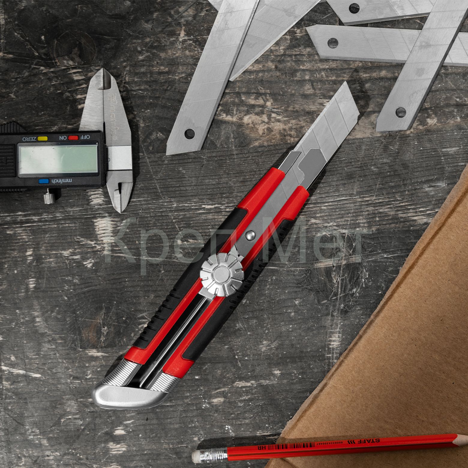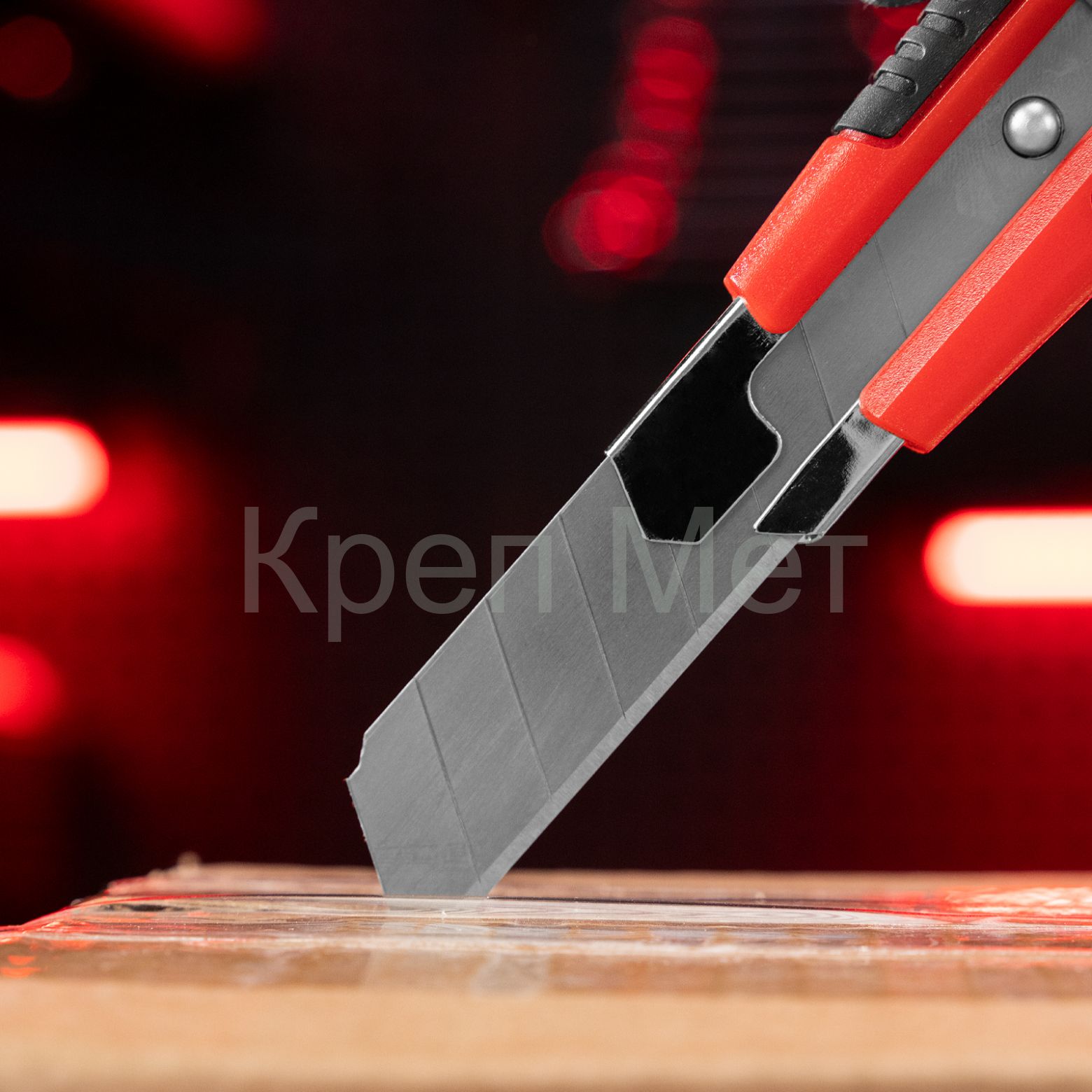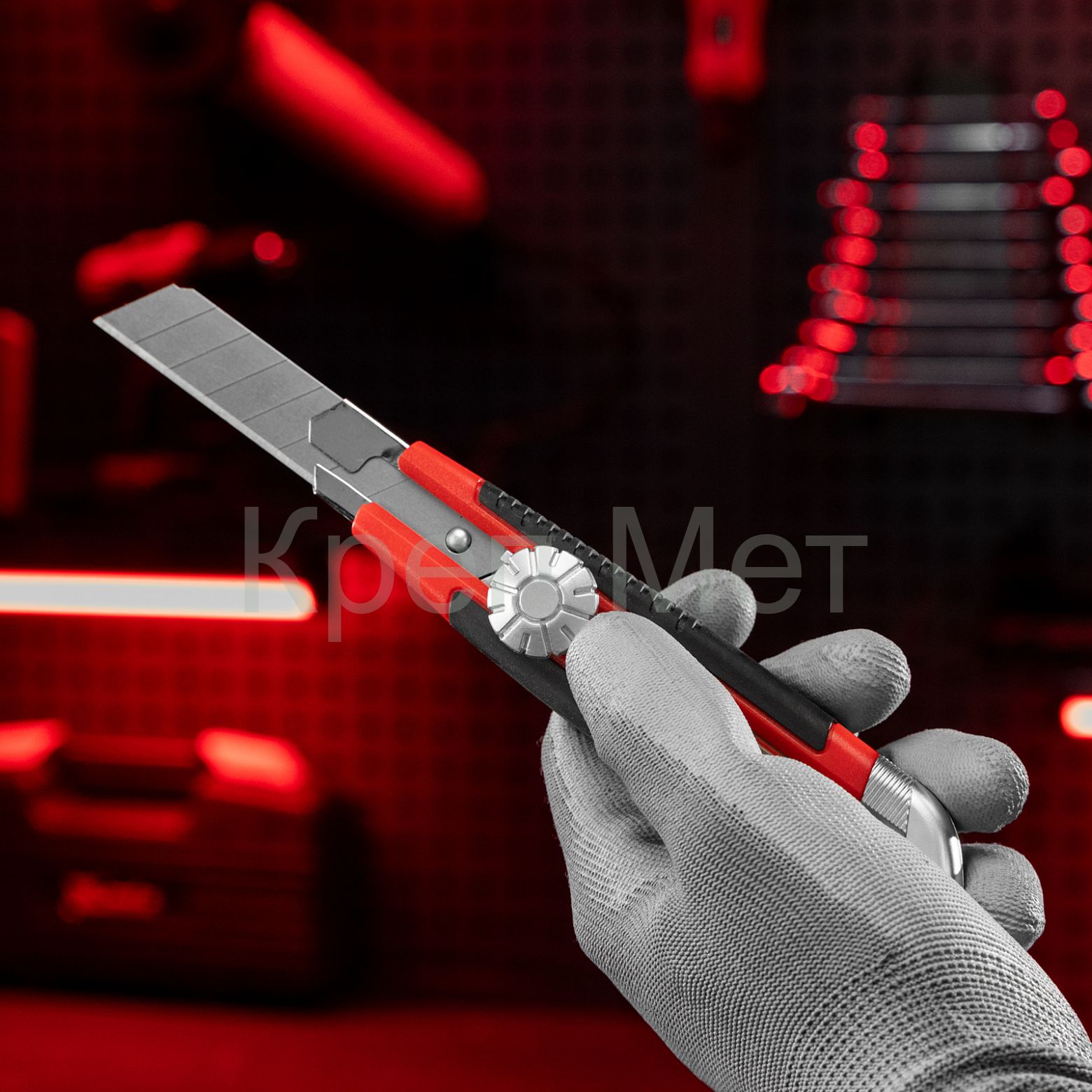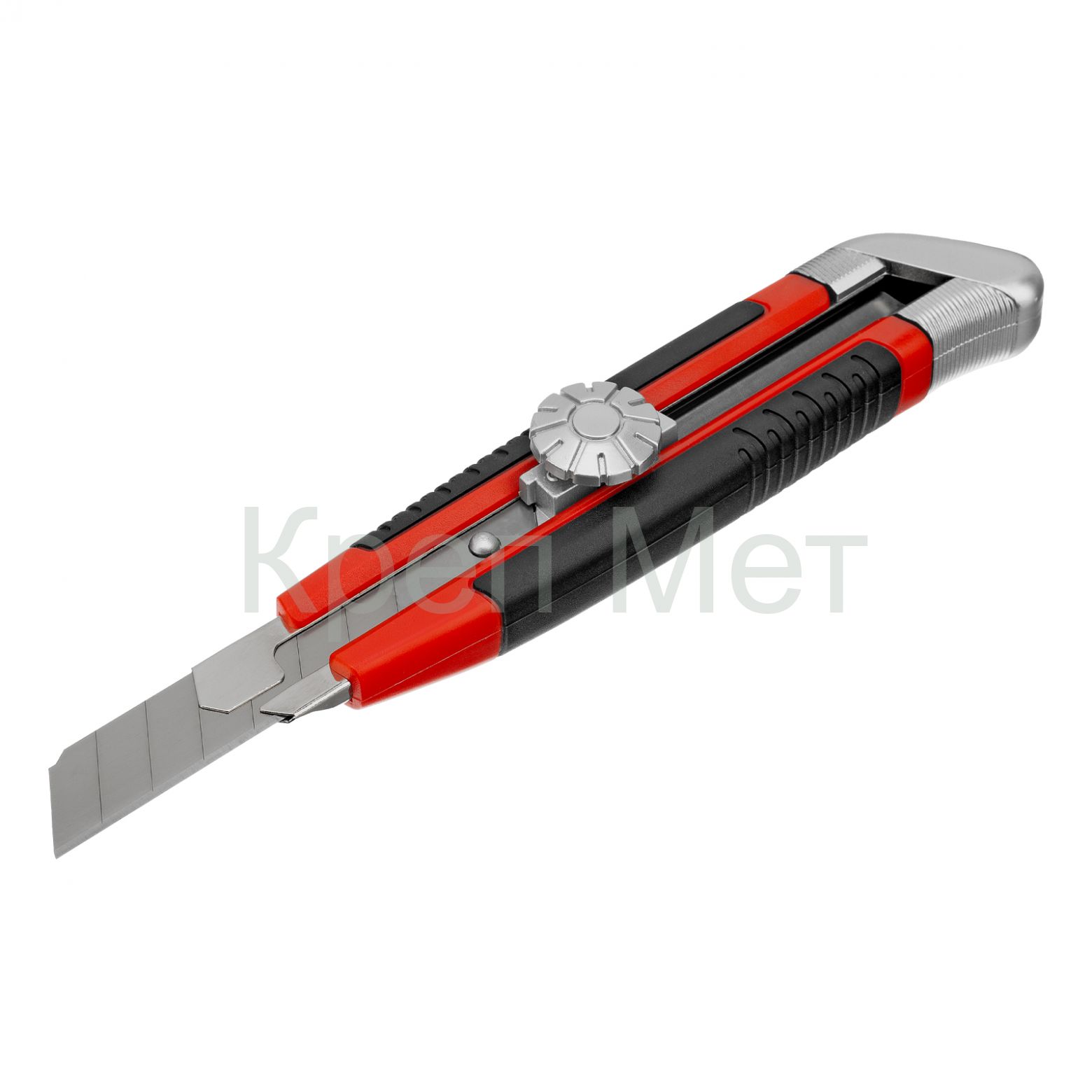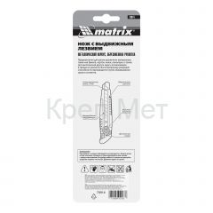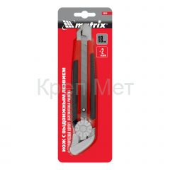 - Нож, 18 мм, выдвижное лезвие, металлическая направляющая, винтовой фиксатор лезвия Matrix