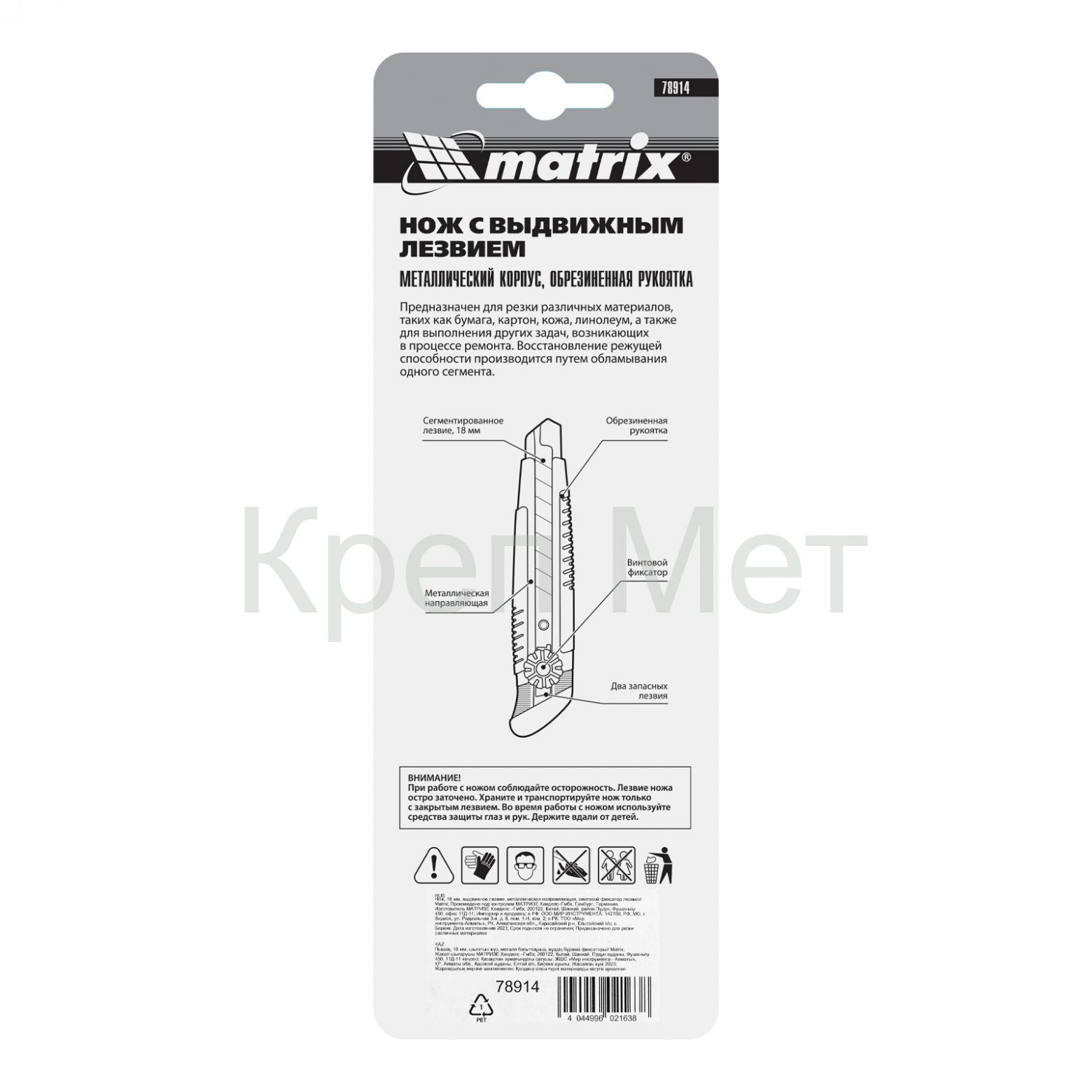 Нож, 18 мм, выдвижное лезвие, металлическая направляющая, винтовой фиксатор лезвия Matrix
