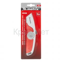 Нож Matrix 78926 с выдвижным трапециевидным лезвием и эргономичной двухкомпонентной рукояткой эффективно справляется с резкой бумаги, картона, кожи и других нетвердых материалов. Он станет незаменимым помощником на строительной площадке, на кухне, в офисе. Складная конструкция инструмента делает его универсальным, а также повышает удобство и безопасность эксплуатации.