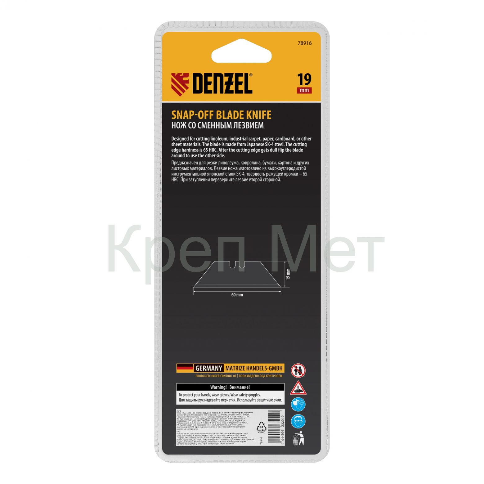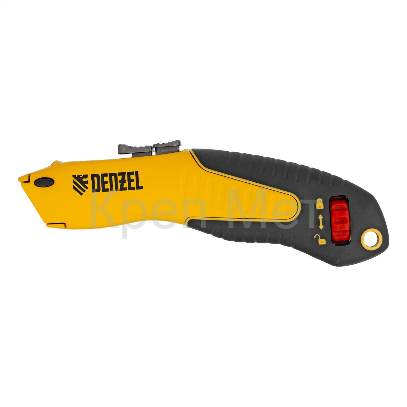 Нож, 19мм, сменное трапециевидное лезвие, SK4, алюминиевый корпус, торцевой зажим Denzel