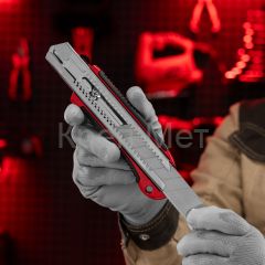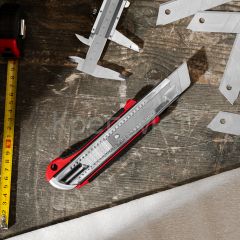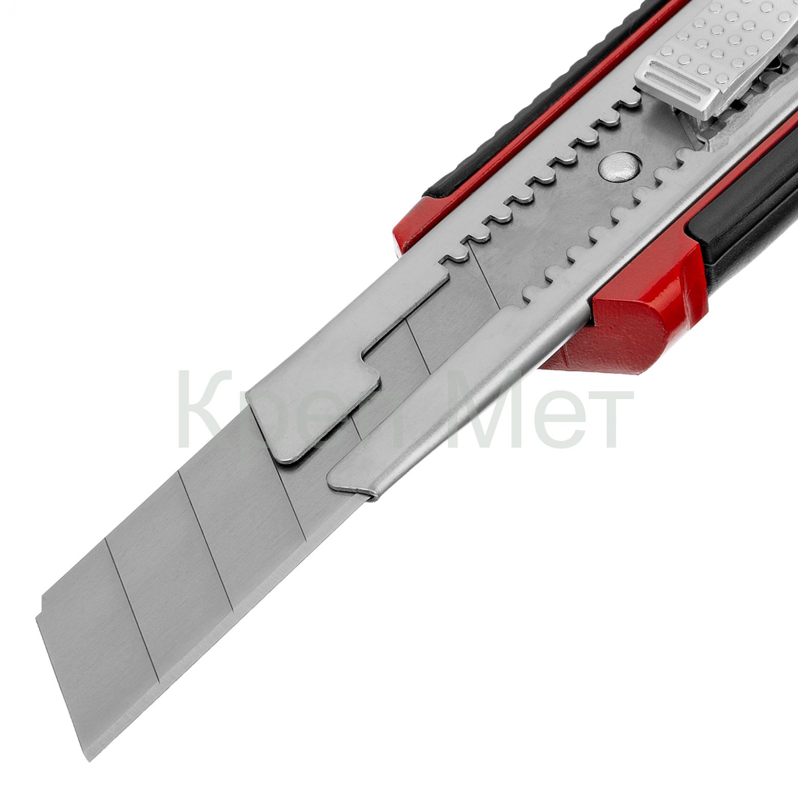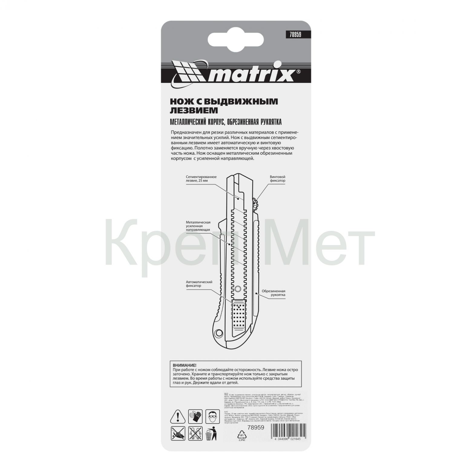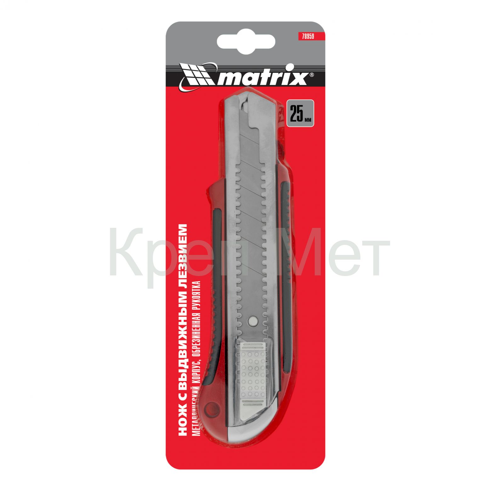 - Нож, 25 мм, выдвижное лезвие, усиленная металлическая направляющая, металлическая обрезиненная рукоятка Matrix