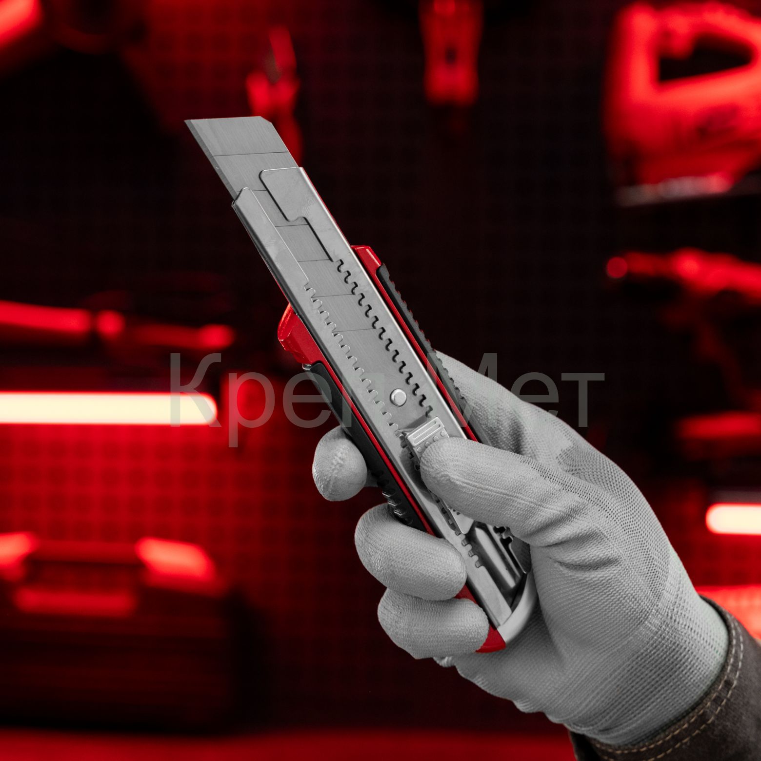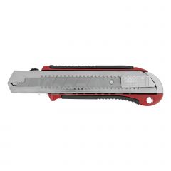 Нож, 25 мм, выдвижное лезвие, усиленная металлическая направляющая, металлическая обрезиненная рукоятка Matrix