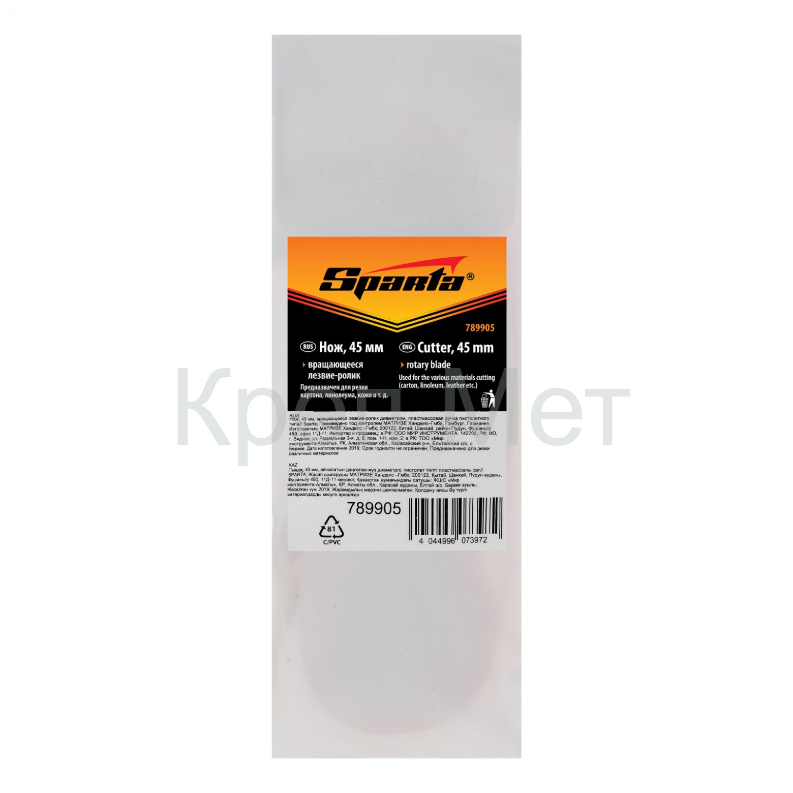 - Нож, 45 мм, вращающееся лезвие ролик, пластмассовая ручка пистолетного типа Sparta