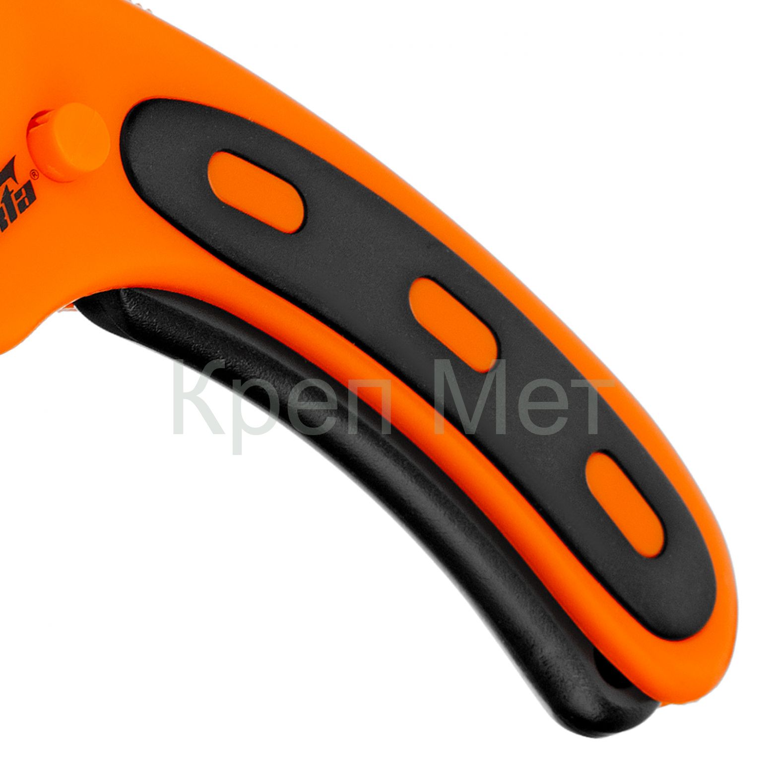 Нож Sparta 789905 с пластмассовой ручкой пистолетного типа оборудован вращающимся лезвием-роликом диаметром 45 мм, благодаря чему легко режет картон, линолеум, плотные ткани, кожу и другие материалы. Он будет полезен на строительной площадке в ходе проведения отделочных работ, пригодится также мастерам хенд-мейда.