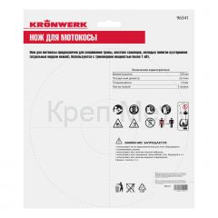 Нож для триммера Kronwerk 96341 размером 255 х 25,4 мм, толщиной 1,6 мм, с 3 лезвиями, предназначен для скашивания газонной травы. Рекомендован к использованию со всеми типами бензиновых триммеров, а также с электрическими триммерами мощностью не менее 1,2 кВт.