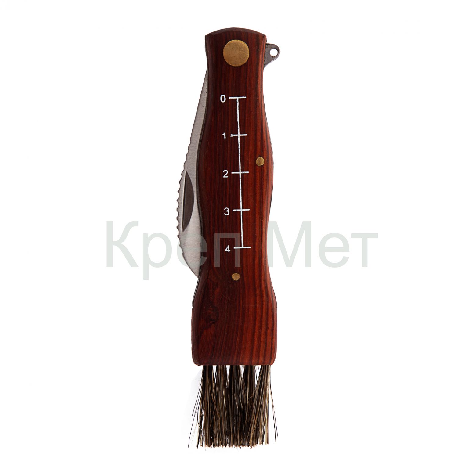 - Нож оснащен кисточкой из натуральной щетины для очищения шляпок грибов от мелких листьев, хвои и другого мусора.