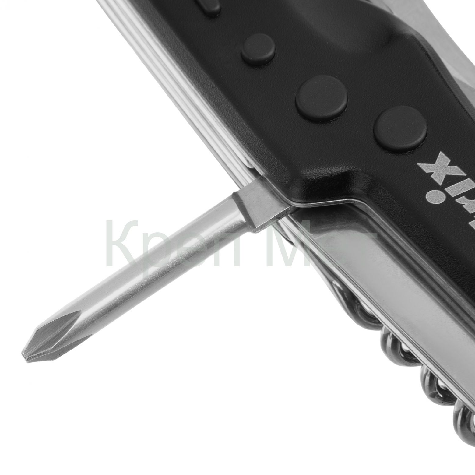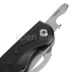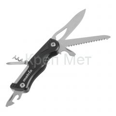 Многофункциональный нож Matrix 17624 длиной 107 мм имеет 7 функций и поставляется с чехлом. Способен резать картон и другие материалы, откручивать и закручивать резьбовой крепеж, открывать бутылки и консервные банки. Складной нож будет полезен дома, на даче, на пикнике, охоте или рыбалке, также пригодится в гараже.