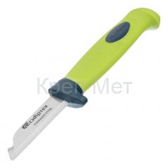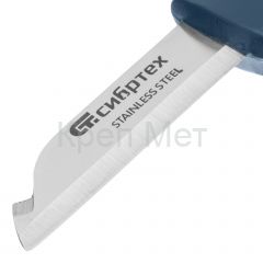 Нож монтажника Сибртех 79012 общей длиной 190 мм и длиной лезвия 67 мм, с чехлом и обрезиненной рукояткой, предназначен для работ с проводкой. С его помощью можно зачистить и обрезать кабель. Нож с пластиковым чехлом безопасен при транспортировке, поэтому его удобно брать с собой на выездные работы.
