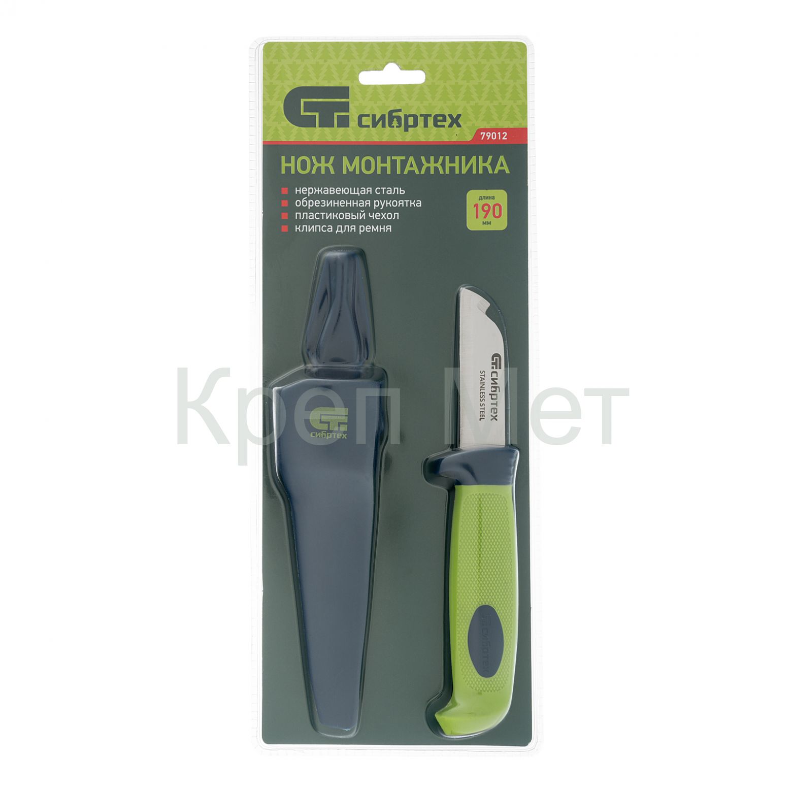 - Нож монтажника с чехлом, обрезиненная рукоятка, 190 мм, лезвие 67 мм Сибртех