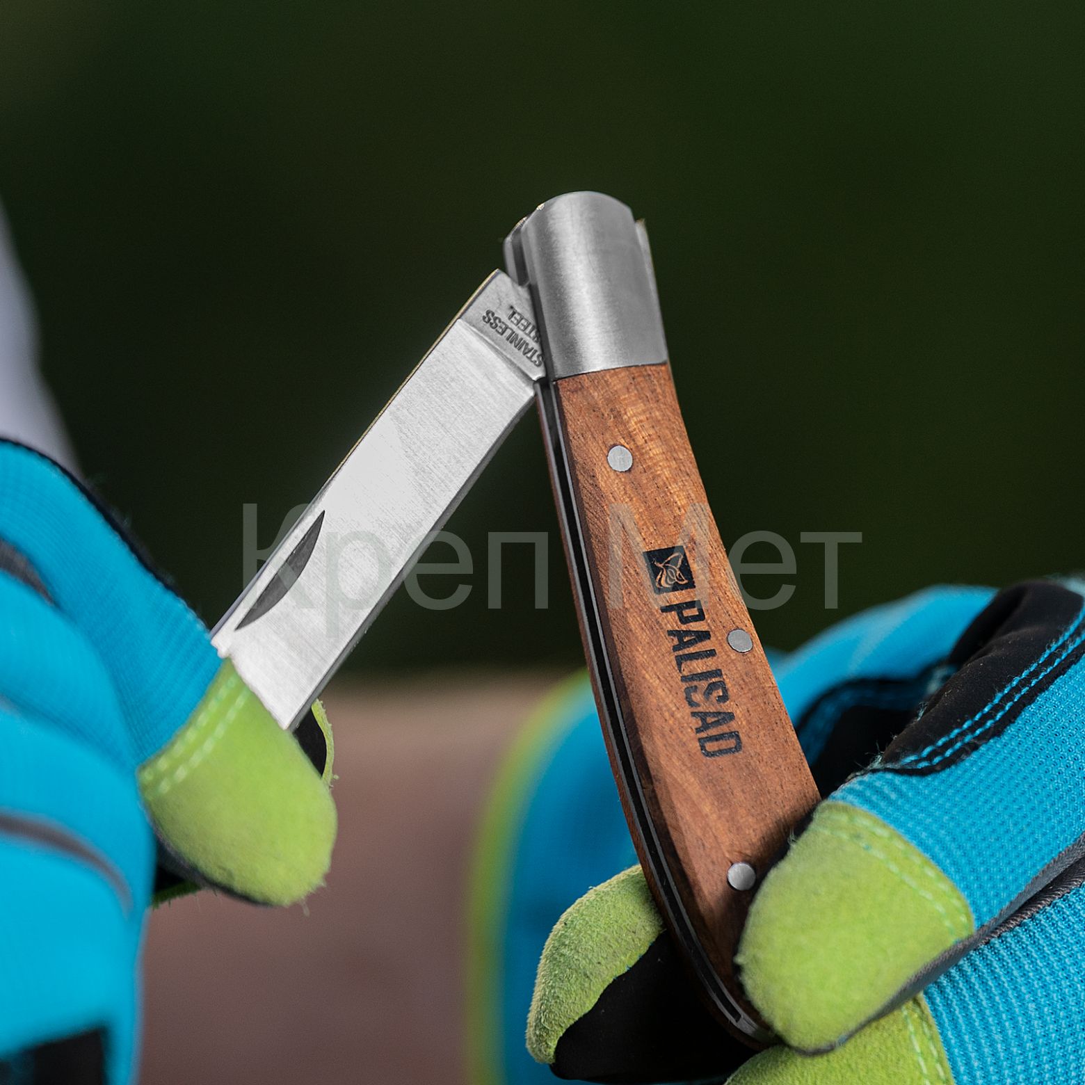 - Нож садовый складной, копулировочный, 173 мм, деревянная рукоятка, Palisad