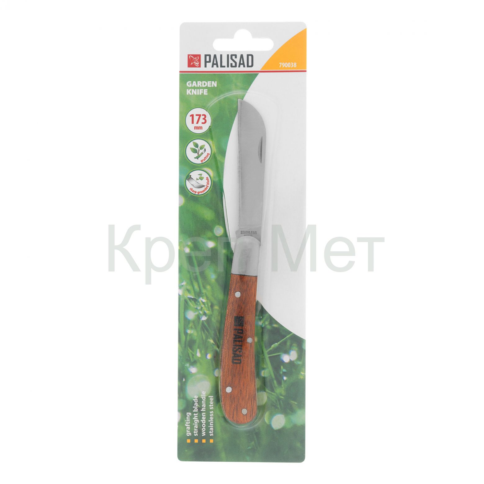 Нож садовый складной, прямое лезвие, 173 мм, деревянная рукоятка Palisad